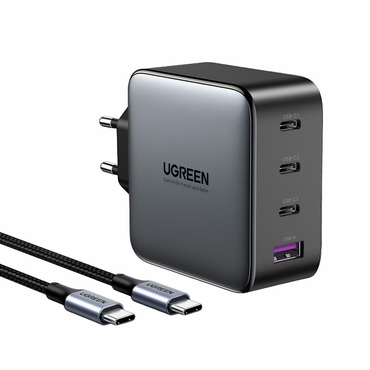 Купить Сетевое зарядное устройство Ugreen USB-A + 3хUSB-C, 100 Вт, GaN Tech Fast Charger, черный