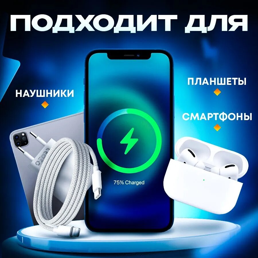 Комплект Premium: быстрое сетевое зарядное устройство для Apple IPhone/IPad/Air Pods 25W с кабелем Type-C - Lightning Плетеный интересное: