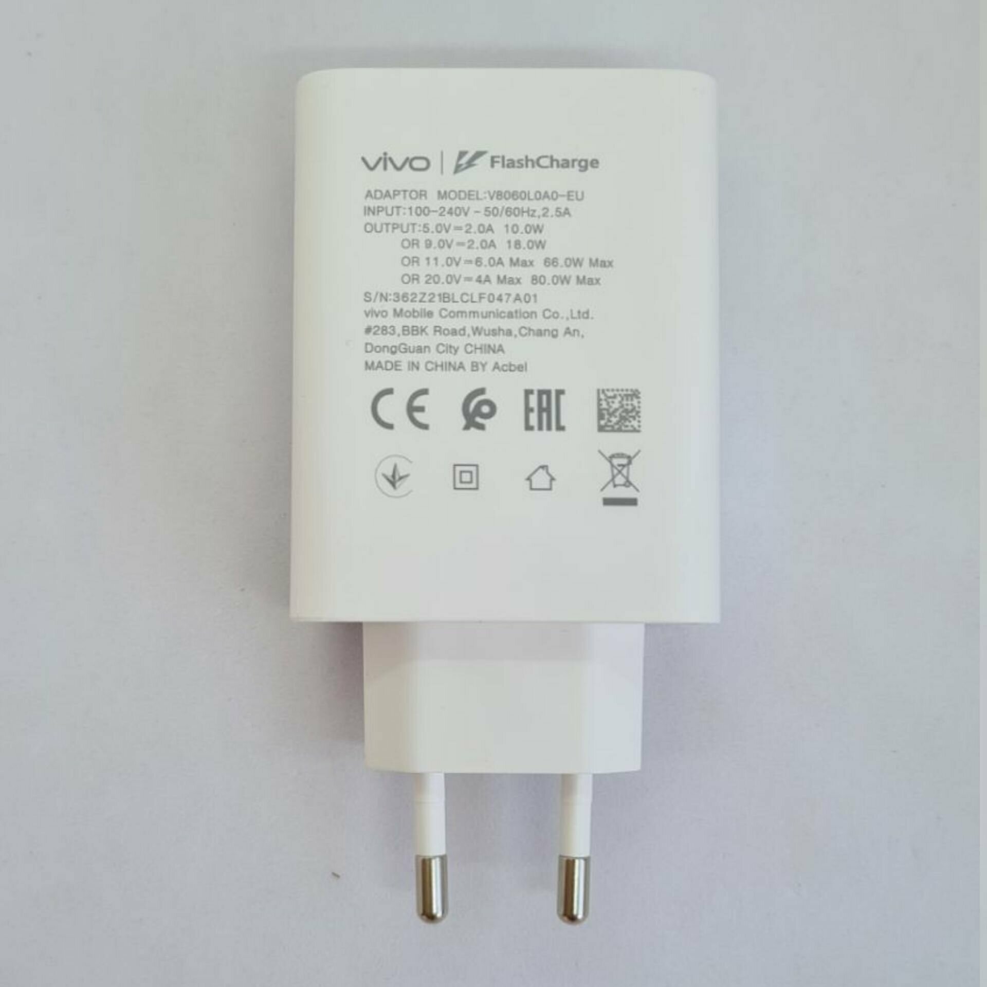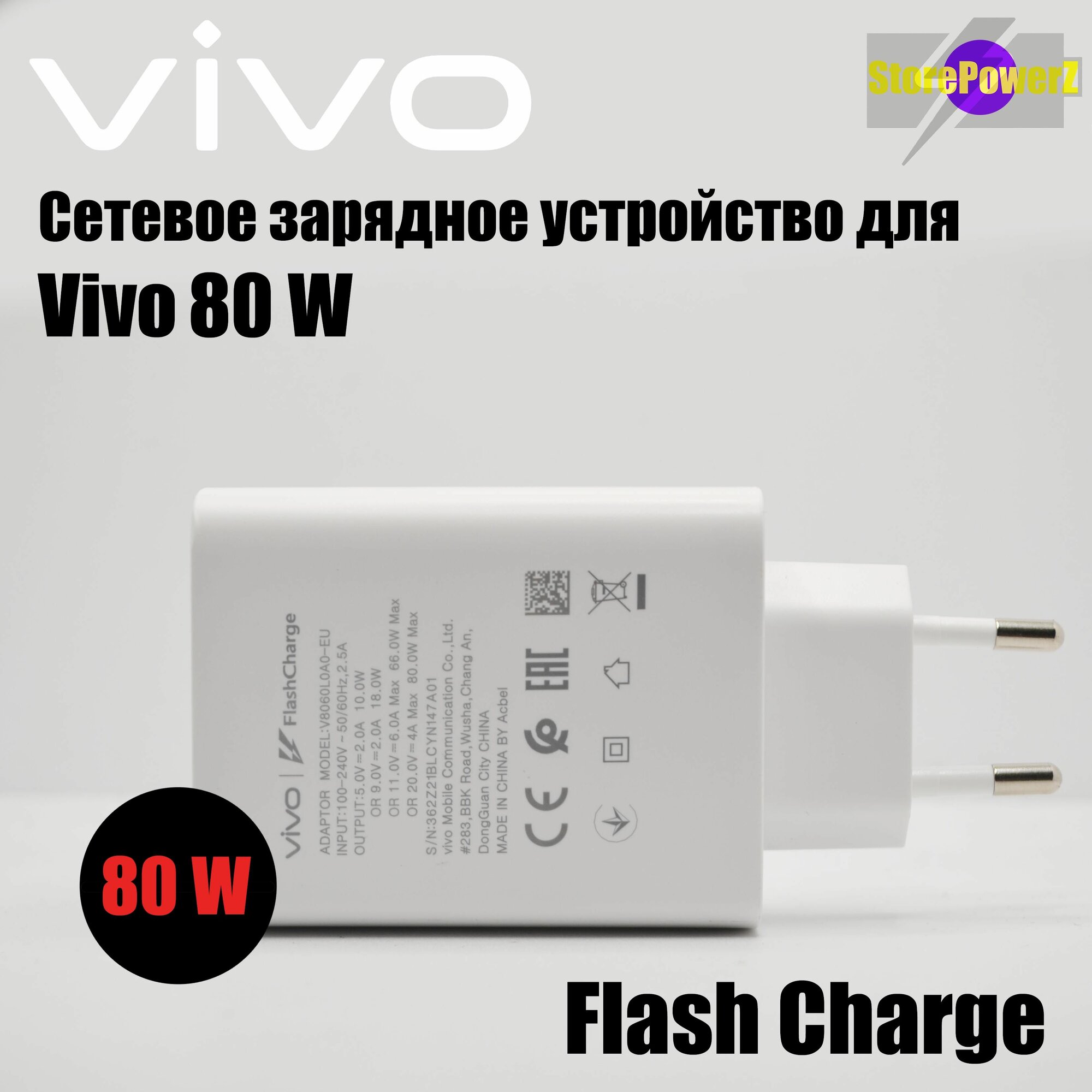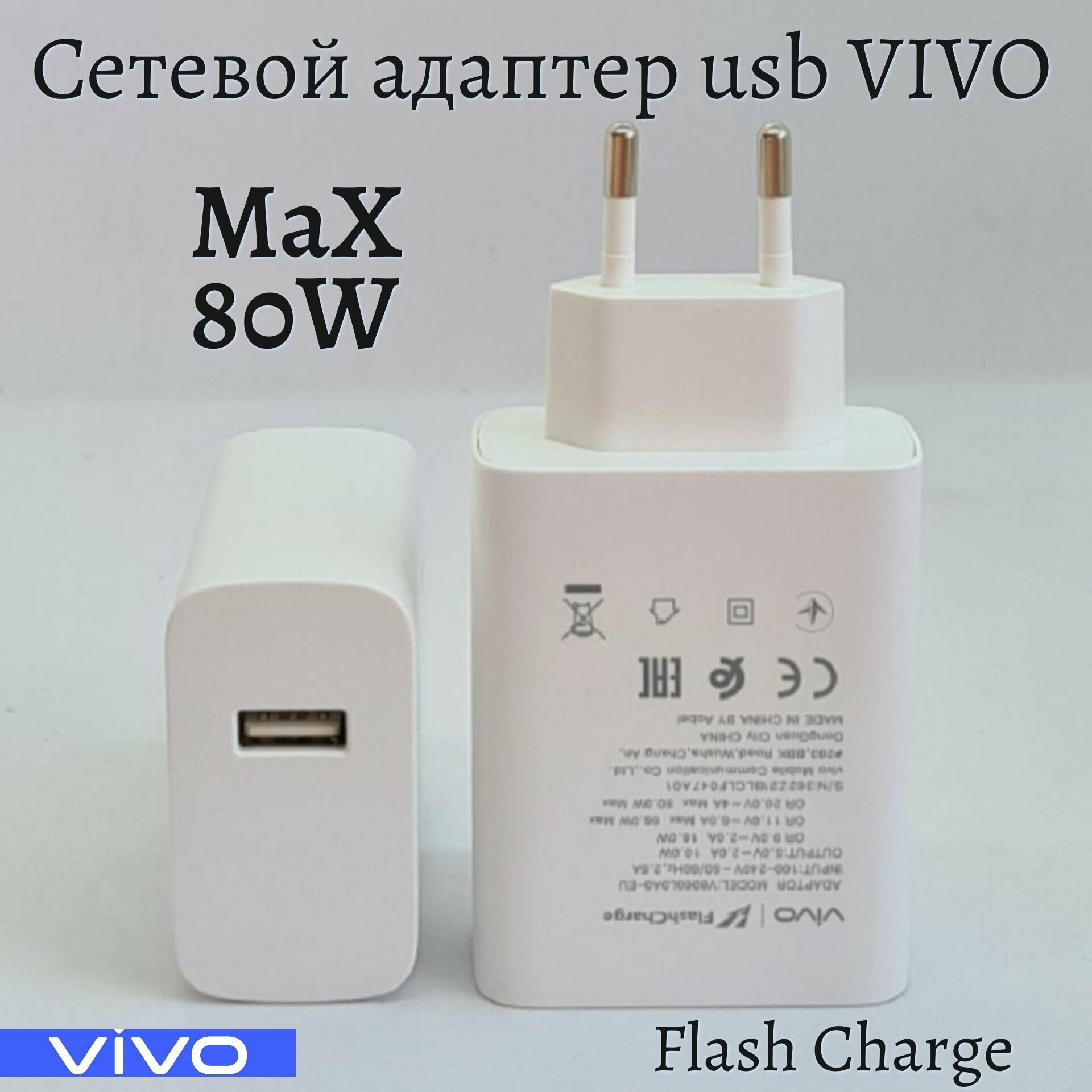 Сетевое зарядное устройство для Vivo 80W (V8060L0A0-EU) с USB входом /Быстрая зарядка для Vivo интересное: