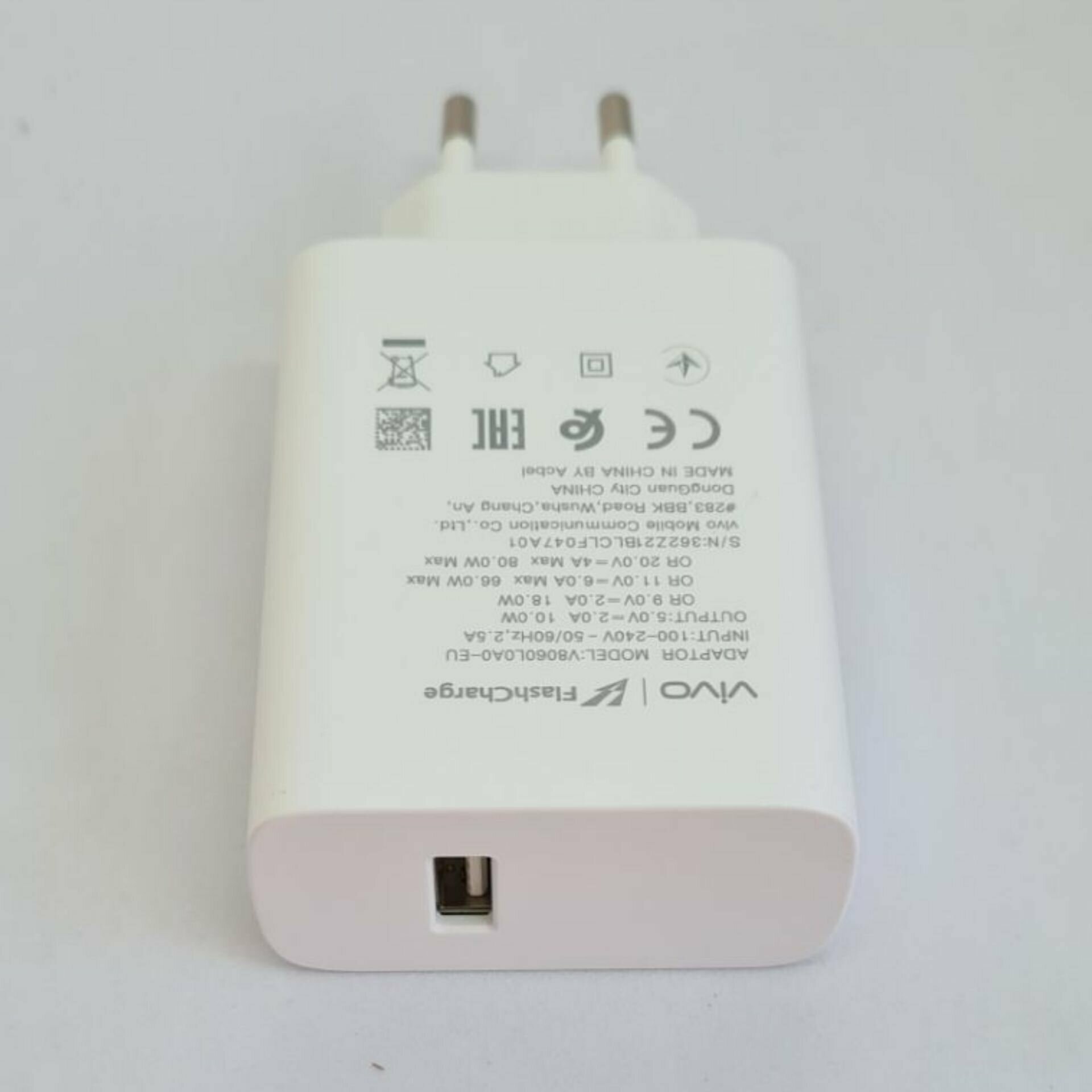 Сетевое зарядное устройство Vivo Flash Charge с USB входом 80W / V8060L0A0-EU / Быстрая зарядка Vivo