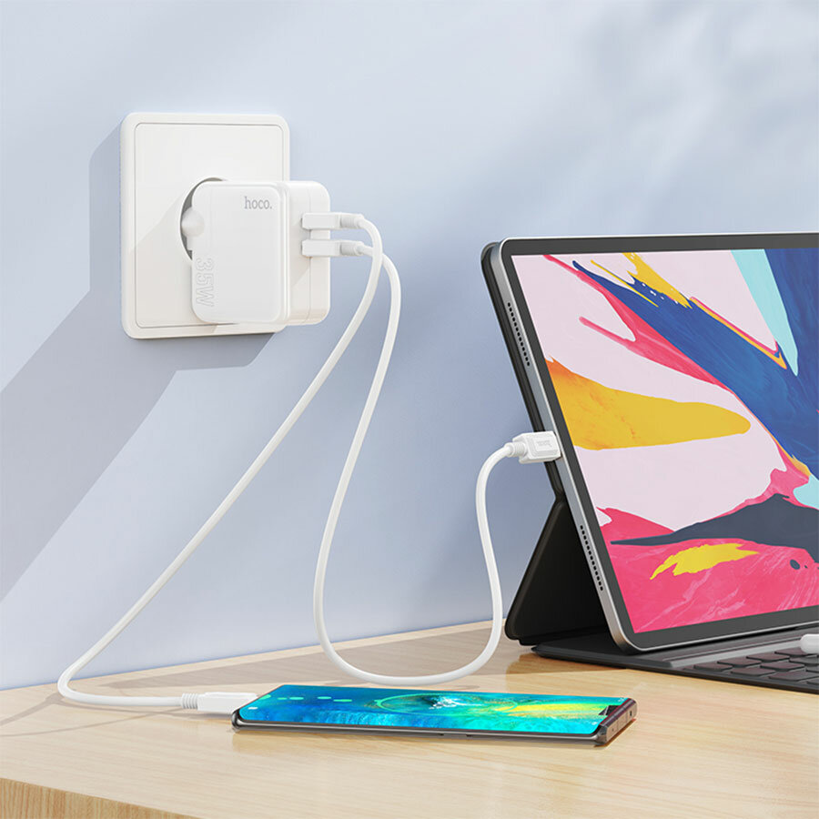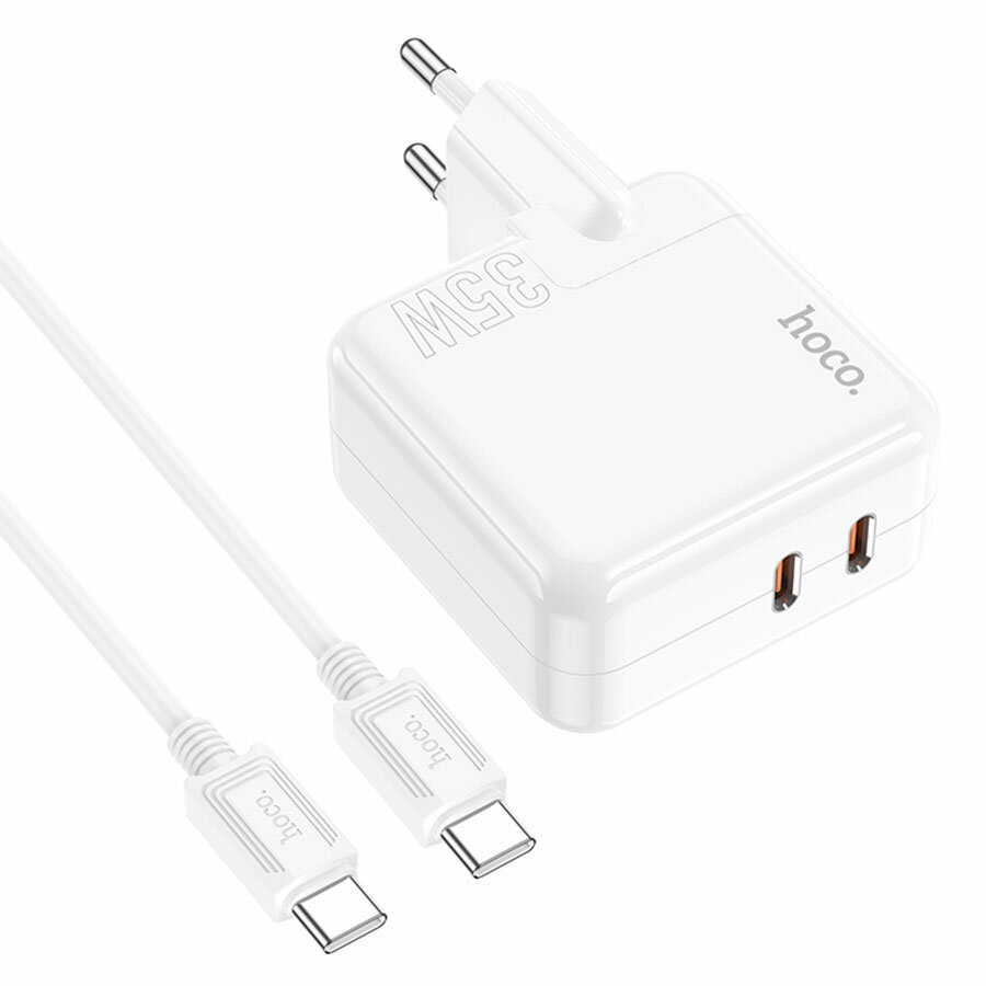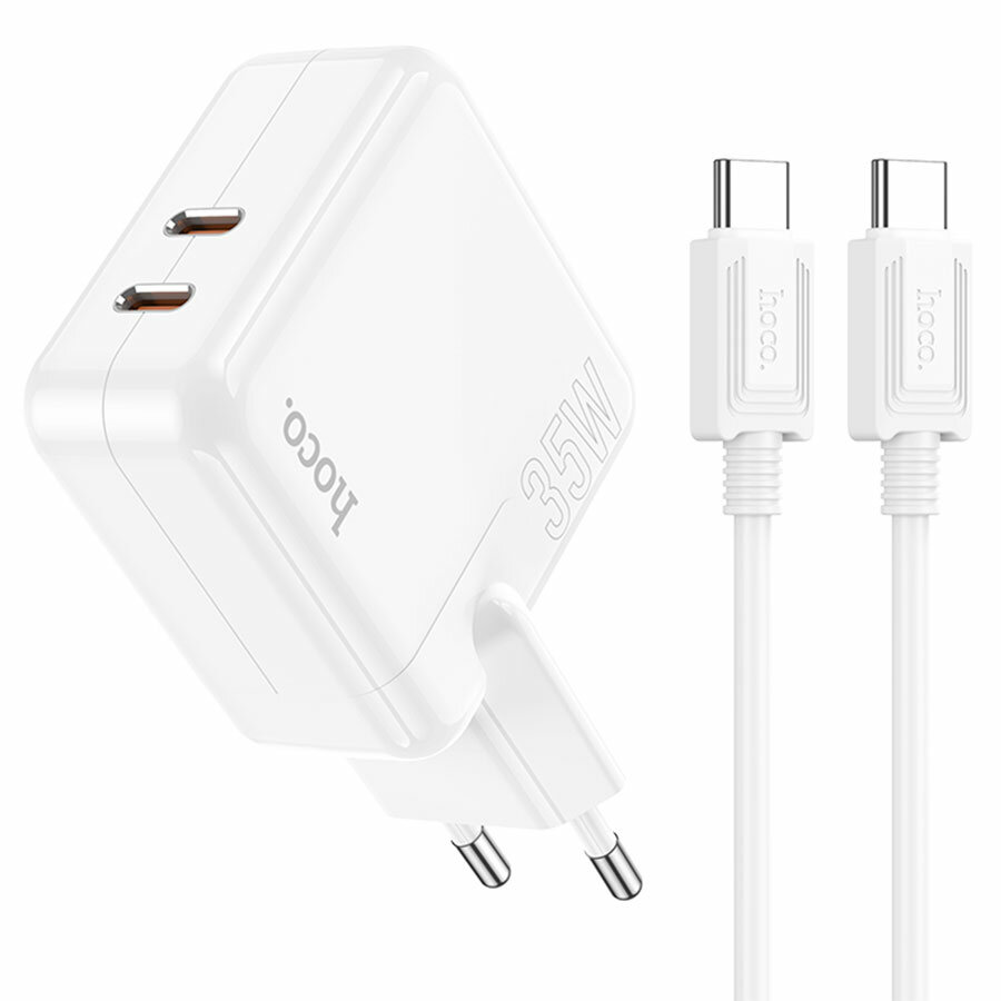 Купить Сетевое зарядное устройство Hoco C110A 2*USB-C 35W (PD35W/QC3.0/AFC/FCP), Белый