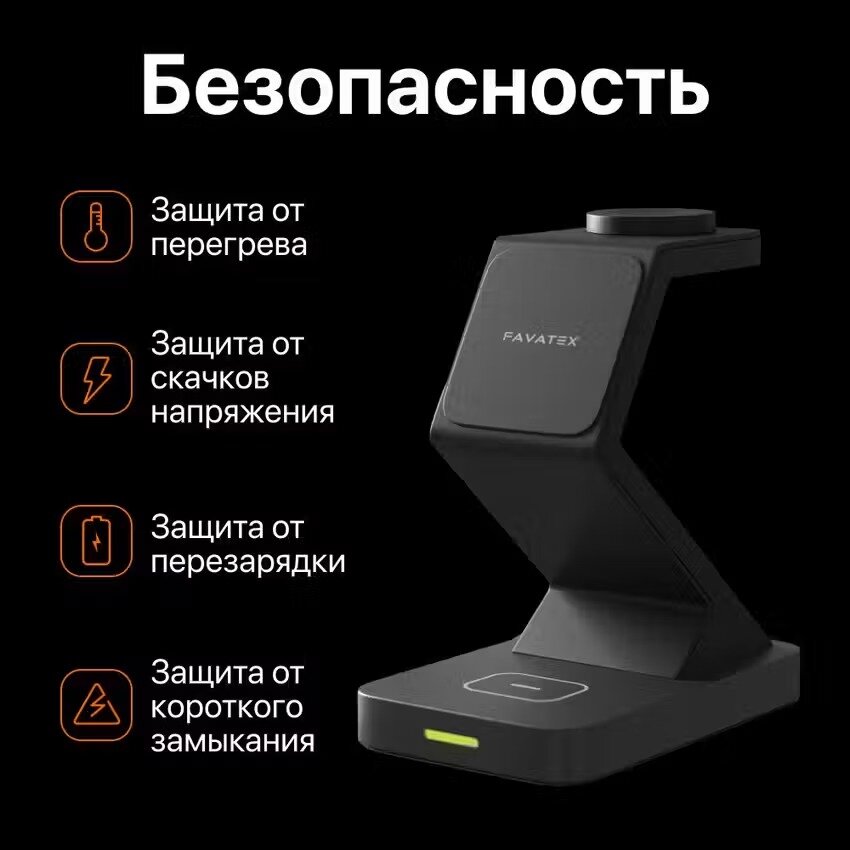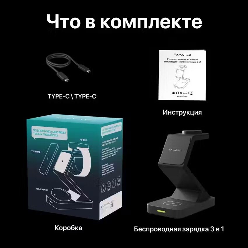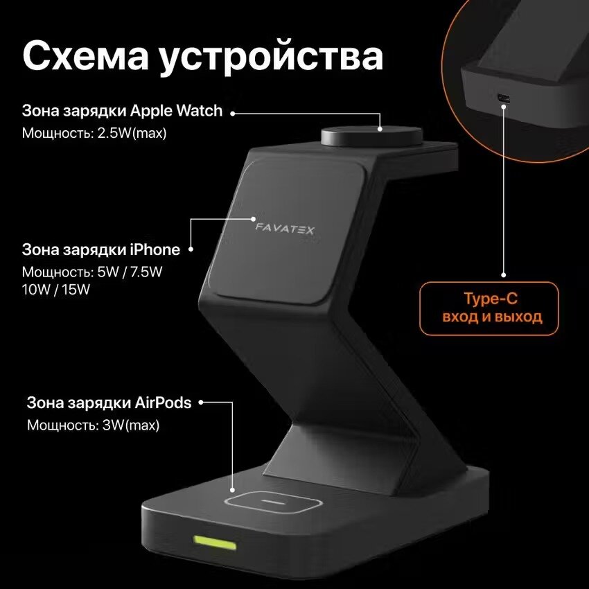 | Конструкция беспроводного устройства | для 1 телефона / зона для Apple Watch / зона для беспроводных наушников / зона для умных часов |