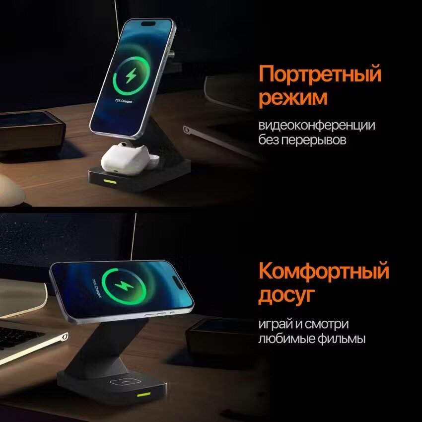 Ниже Вы можете прочитать отзывы на Магнитная беспроводная зарядка для iPhone 3 в 1, док станция для Айфон, AirPods, Apple Watch, ознакомится с подробными характеристиками, посмотреть интересные обзоры и фотографии на Магнитная беспроводная зарядка для iPhone 3 в 1, док станция для Айфон, AirPods, Apple Watch.