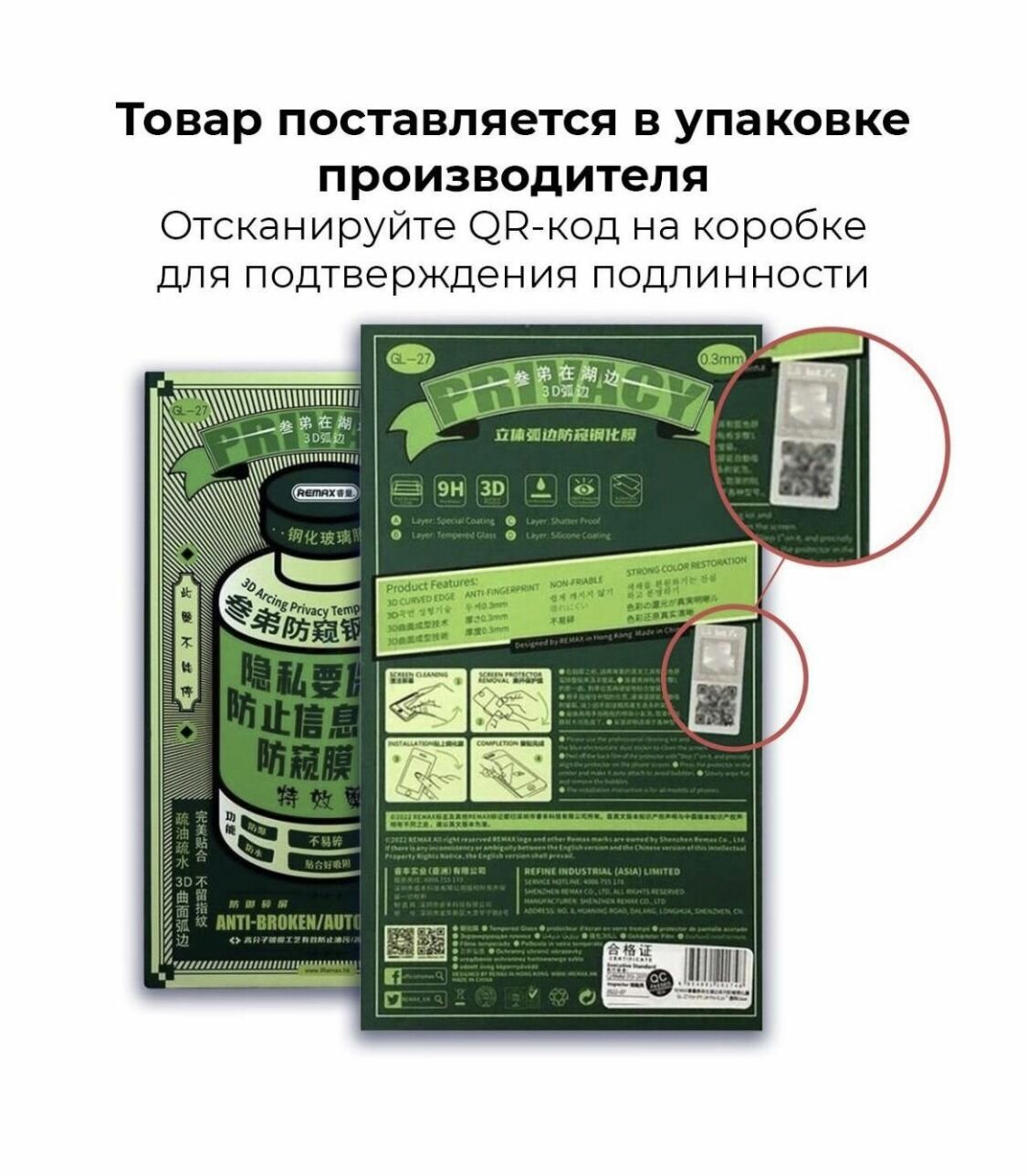 Купить Защитное стекло Антишпион Remax для iPhone 14 Pro MAX / 14 Plus