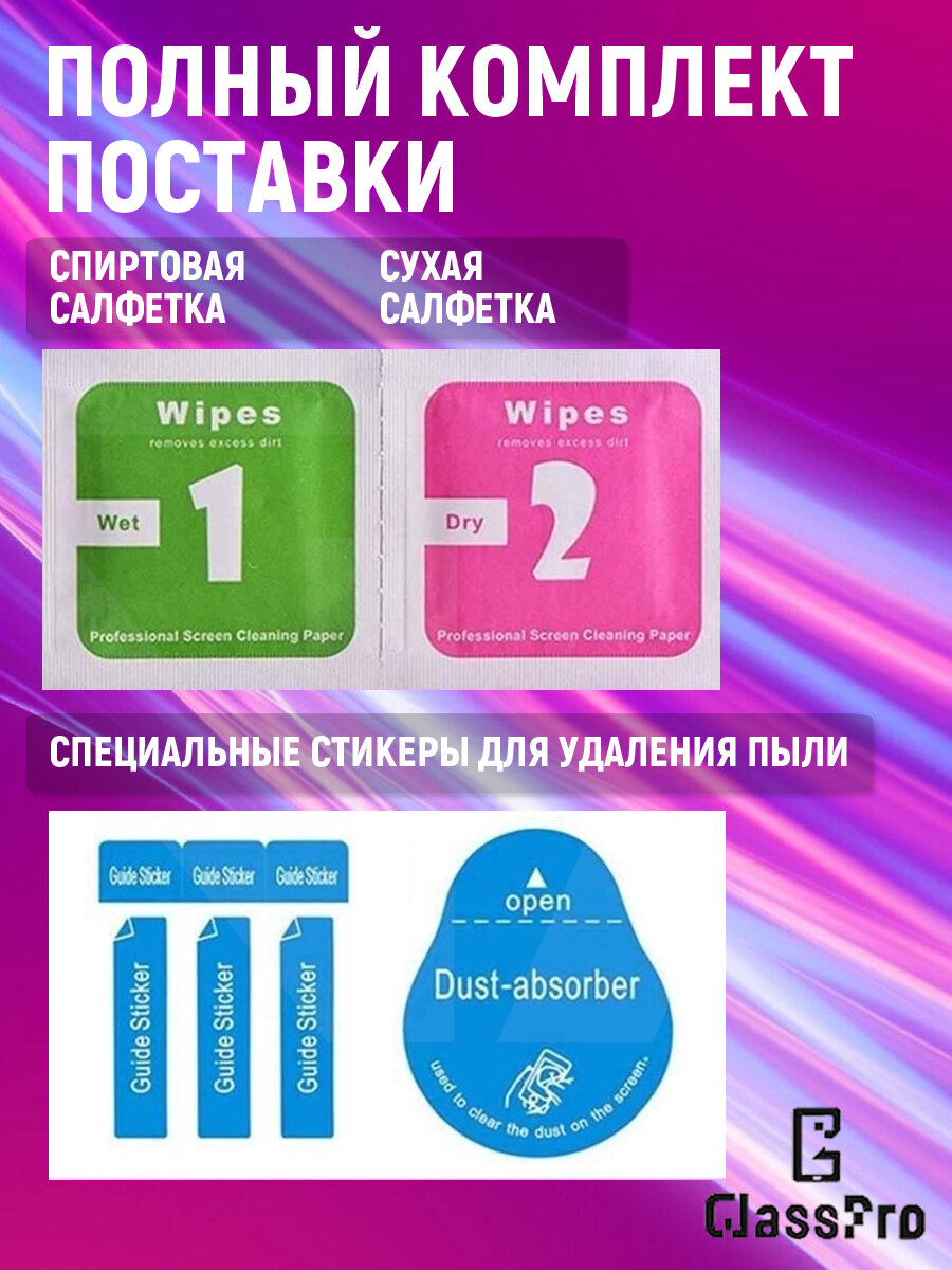 | Подробная комплектация | защитное стекло 2 салфетки стикеры от пыли |