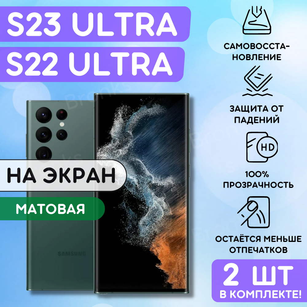 Купить Комплект из 2 шт. Матовая гидрогелевая полиуретановая плёнка на SAMSUNG Galaxy S22 Ultra, S23 Ultra, пленка защитная самсунг галакси с22 ультра, с23 ультра, противоударная бронеплёнка