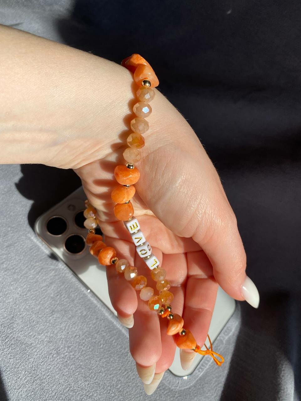Шнурок на телефон из бусин и камней украшение для руки