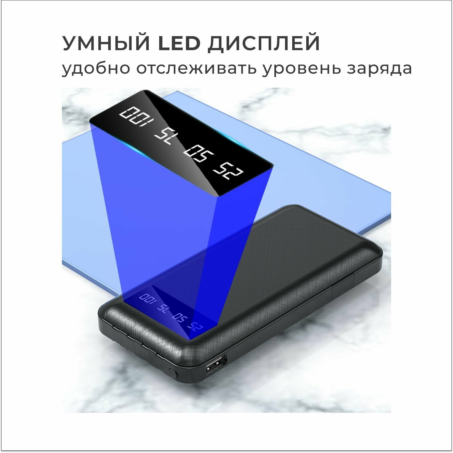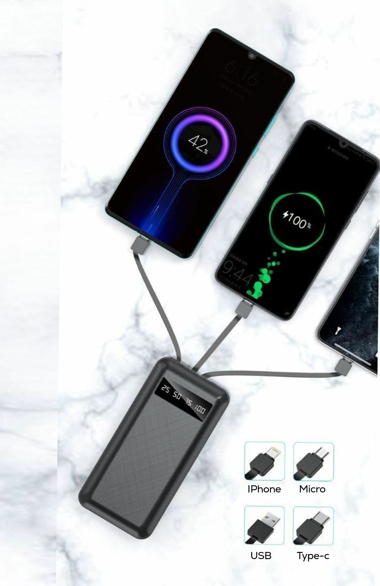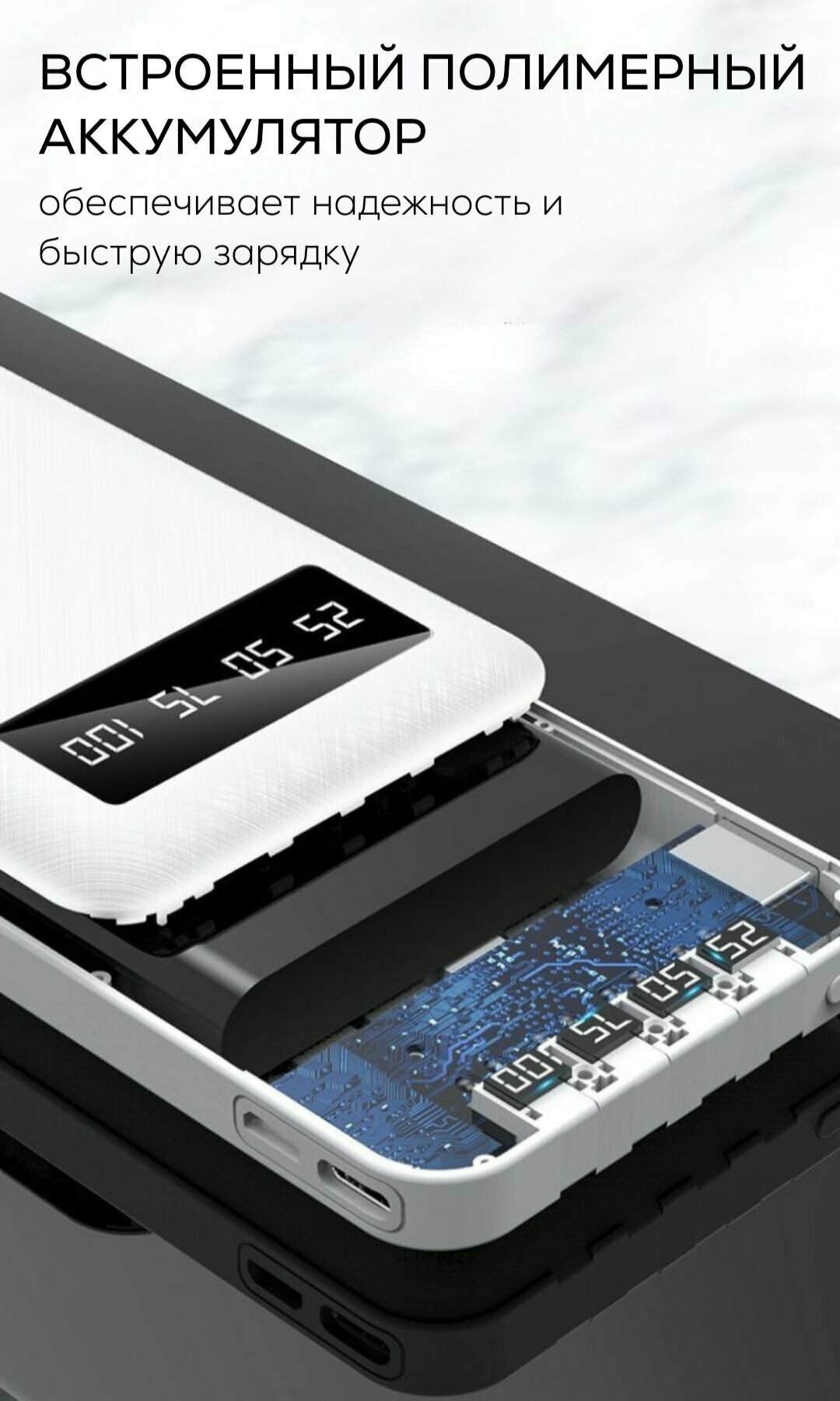 Портативный аккумулятор, повербанк 10 000 mAh, внешний аккумулятор со встроенными кабелями USB, Type-c, lightning, micro-usb интересное: