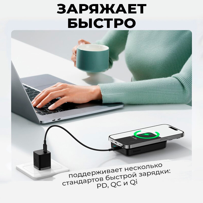 СохранитьПортативное зарядное устройство Baseus Magnetic Mini Wireless Fast Charge 10000mAh 30W Black (PPCX110201) интересное: