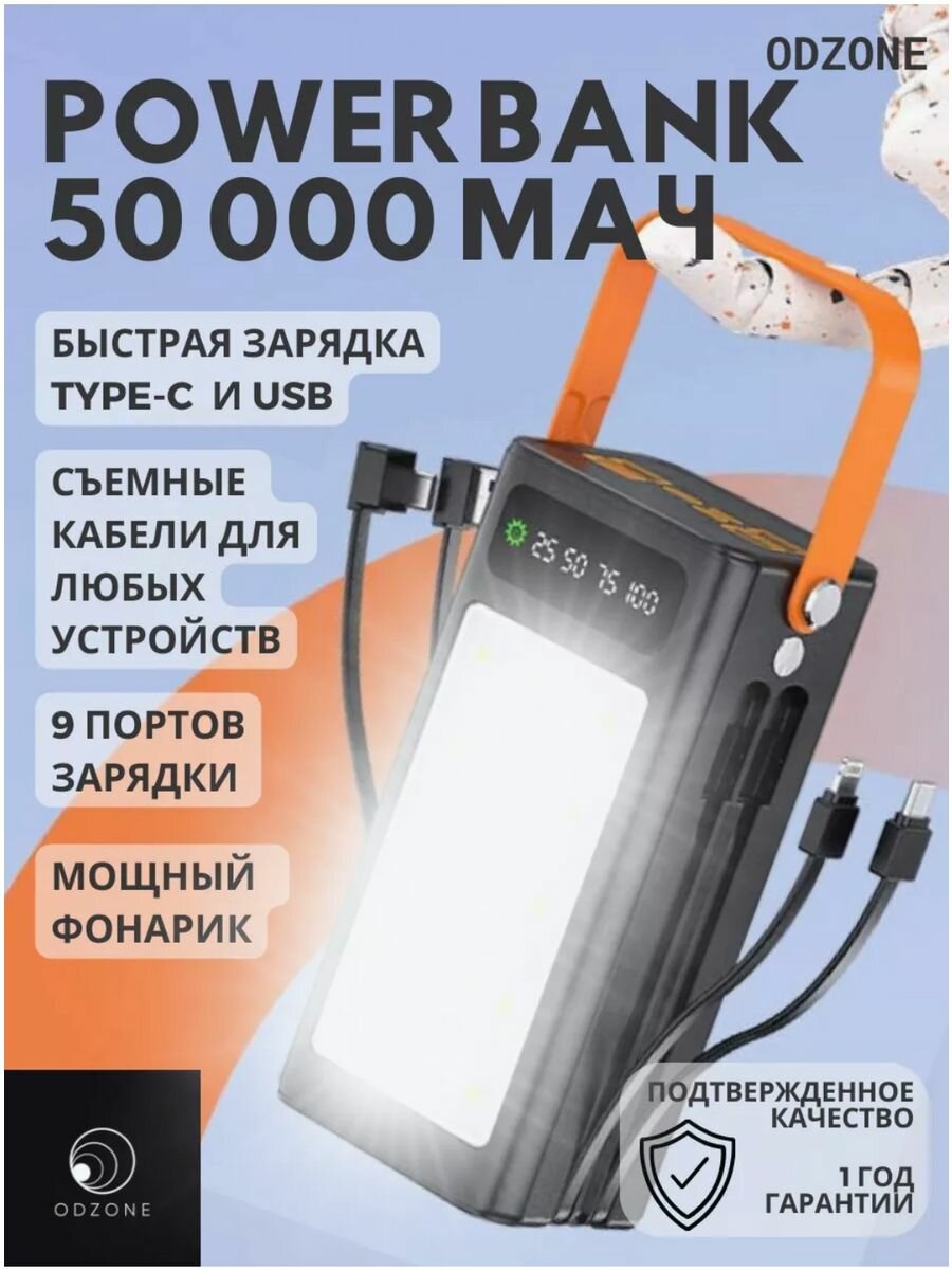 Повербанк 50000 с быстрой зарядкой и фонариком интересное: