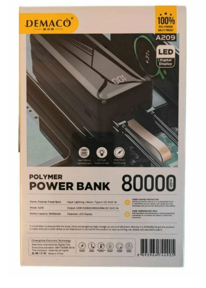 Купить Внешний аккумулятор повербанк Demaco A209 на 80000 mAh черный