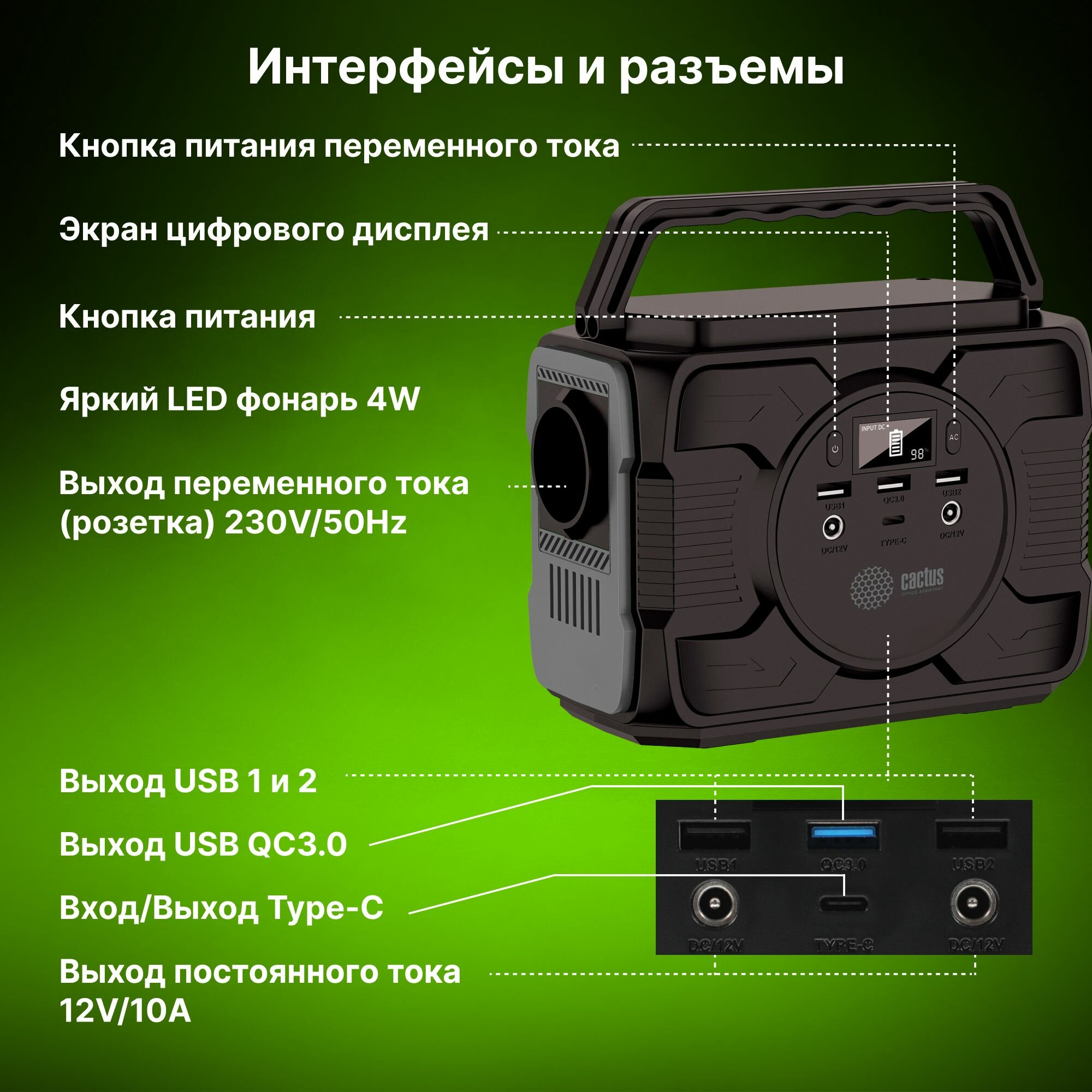 Портативная электростанция / внешний аккумулятор 48000 мАч с розеткой 220V Cactus CS-PCS172 интересное: