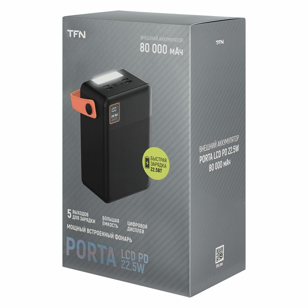 Повербанк 80000 с быстрой зарядкой внешний аккумулятор TFN Porta, с фонариком