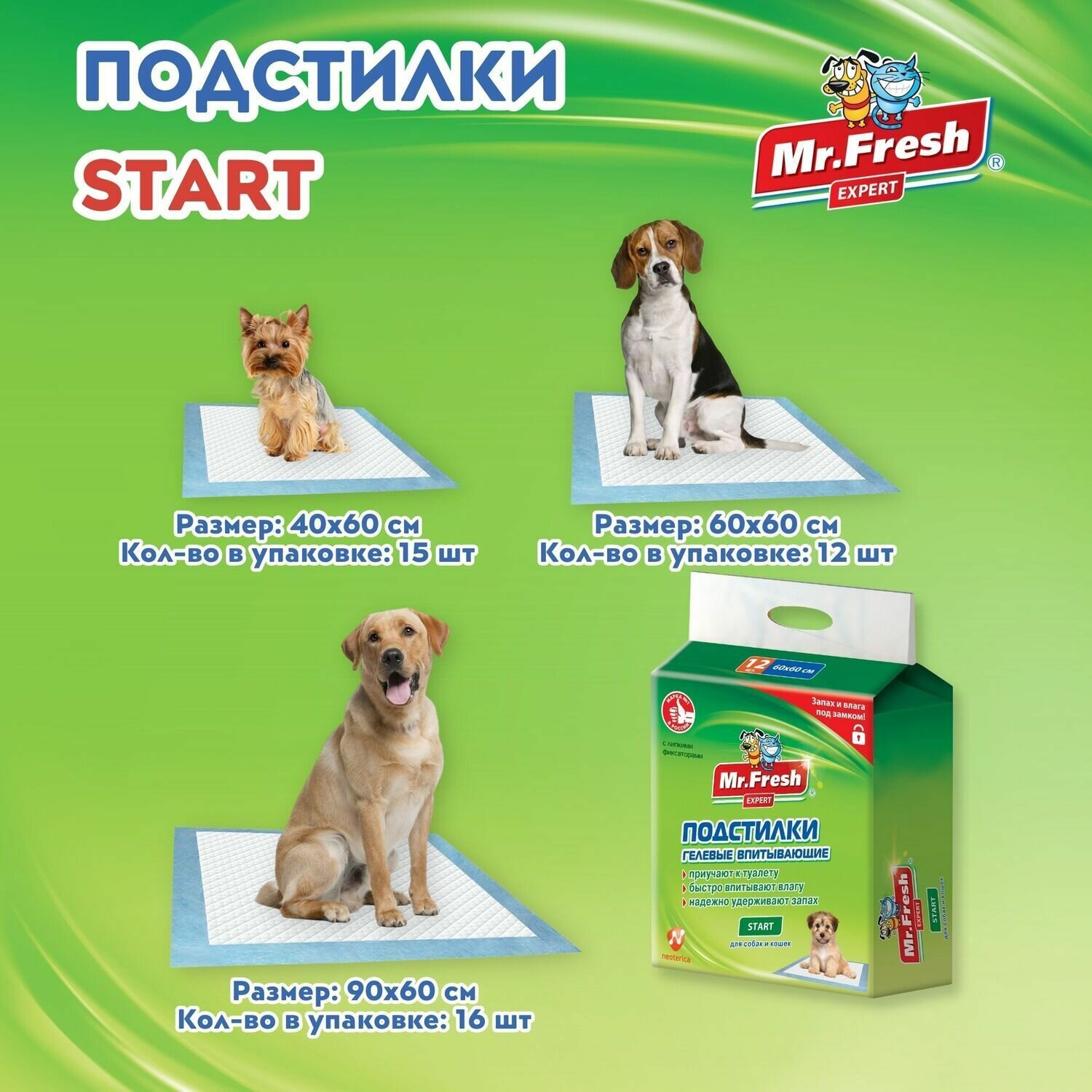 Купить Подстилки-пеленки Mr.Fresh Expert Start, для приучения к туалету, для кошек и собак, 60 см*60 см (12 шт.)