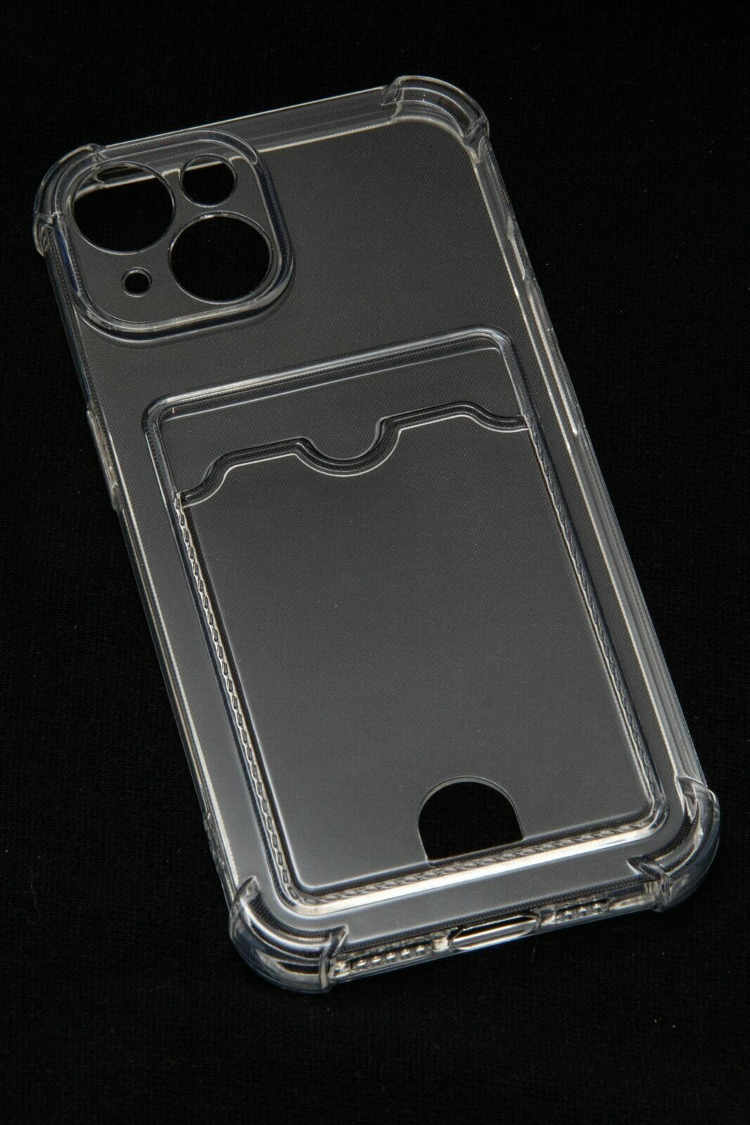 Купить Противоударный чехол с кармашком для фото и карт для Apple iPhone 14 / силиконовый прозрачный чехол с защитой камеры на Айфон 14