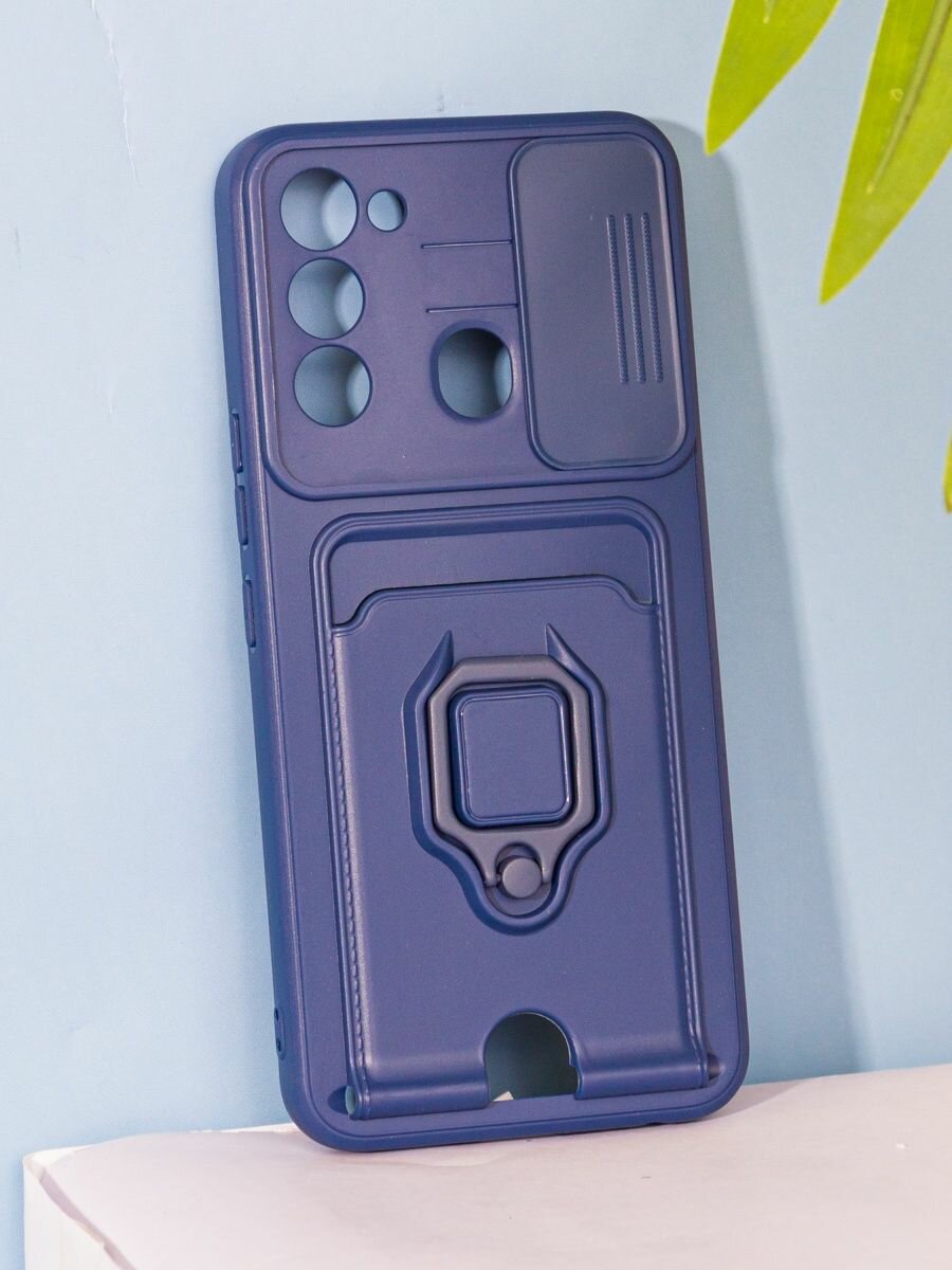 Купить Чехол на Tecno Spark 8C/GO 2022 с картой и магнитом, синий