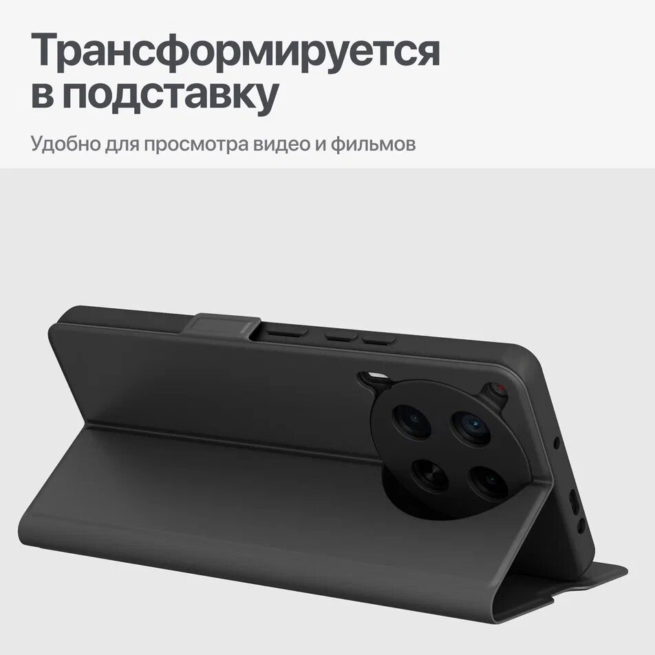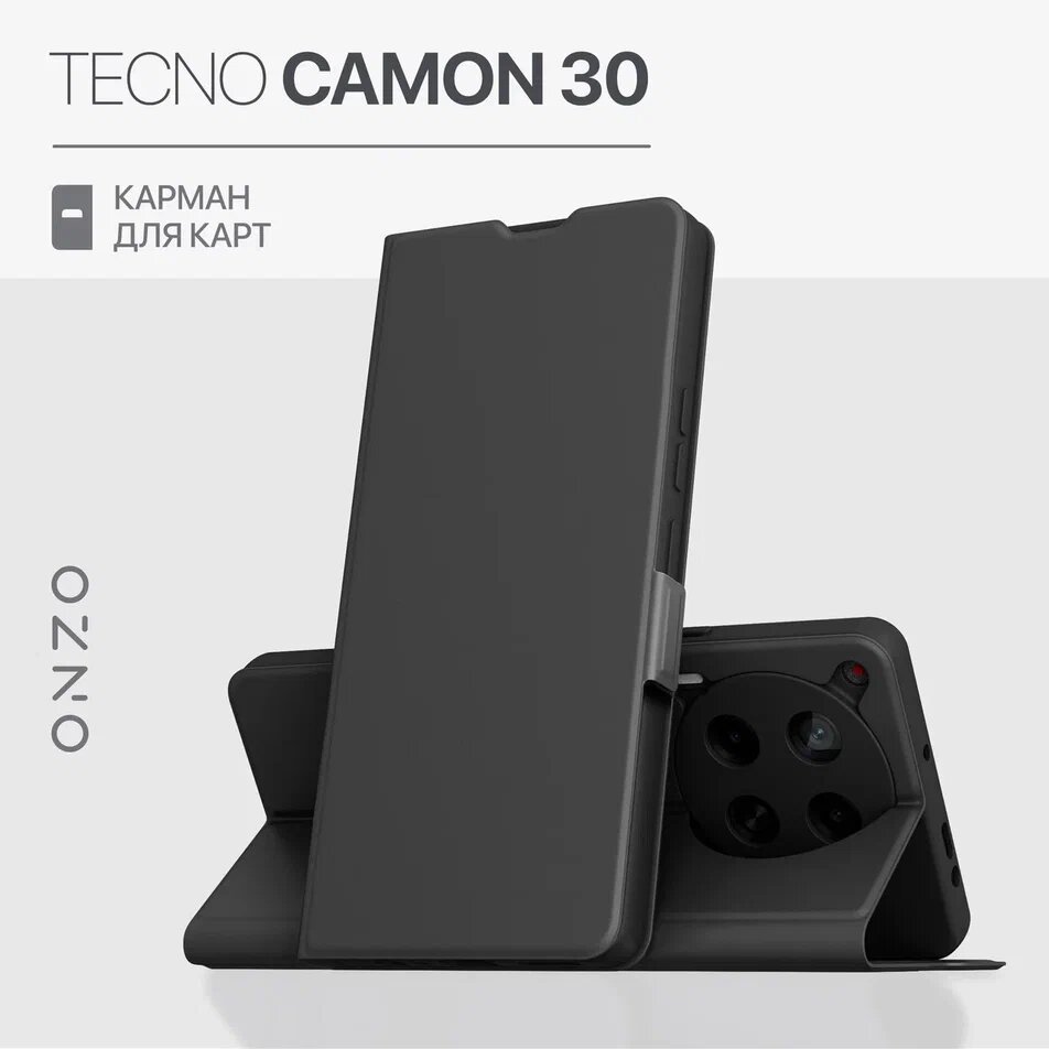 Чехол на Tecno Camon 30 / Техно Камон 30 книжка с функцией подставки и с карманом, черный интересное: