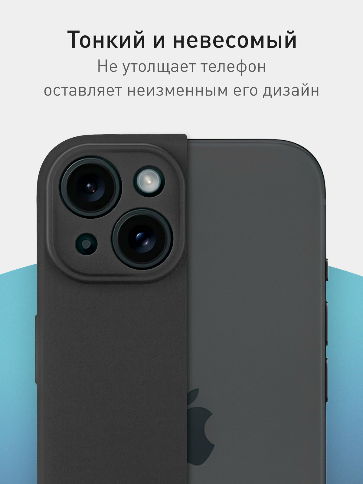 Чехол ROSCO для Apple iPhone 15 (Эпл Айфон 15), силиконовый чехол, тонкий, матовое покрытие, защита модуля камер, графитовый
