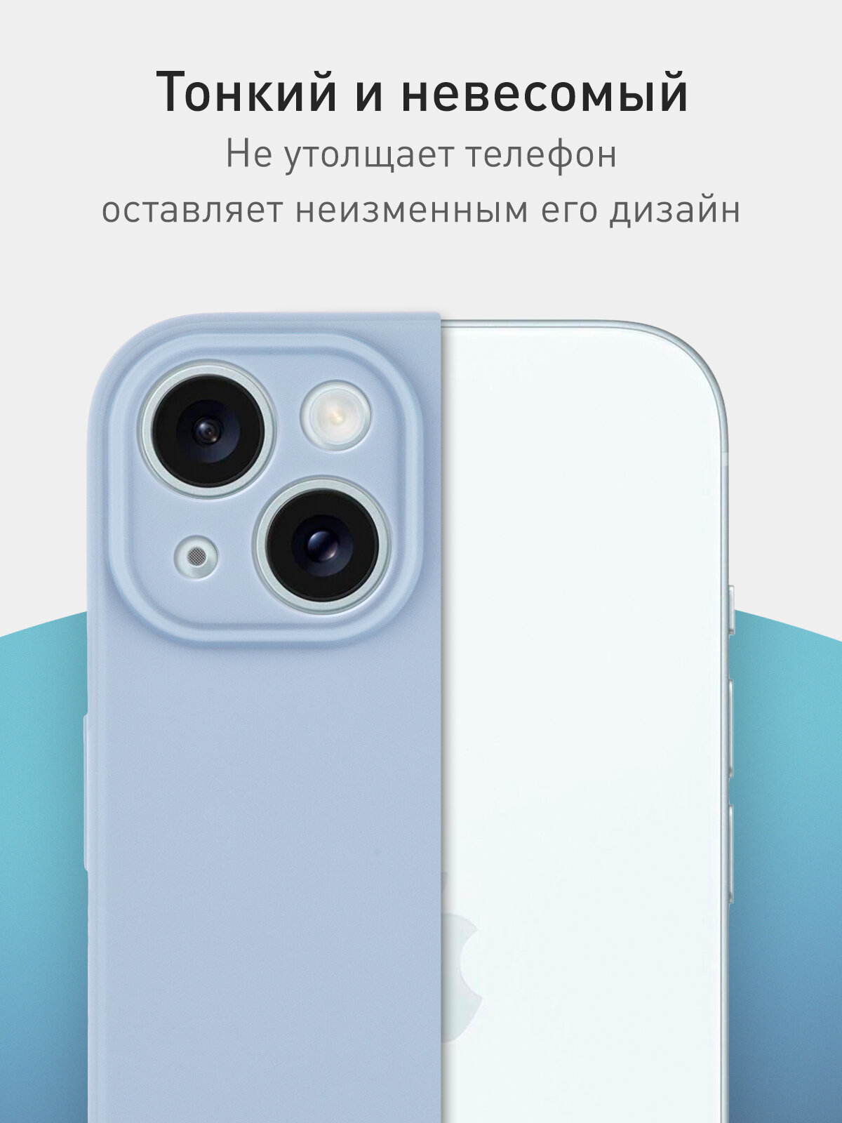 Силиконовый чехол ROSCO для Apple iPhone 15 в цвет корпуса (Эпл Айфон 15), тонкий, матовое покрытие, защита модуля камер, голубой