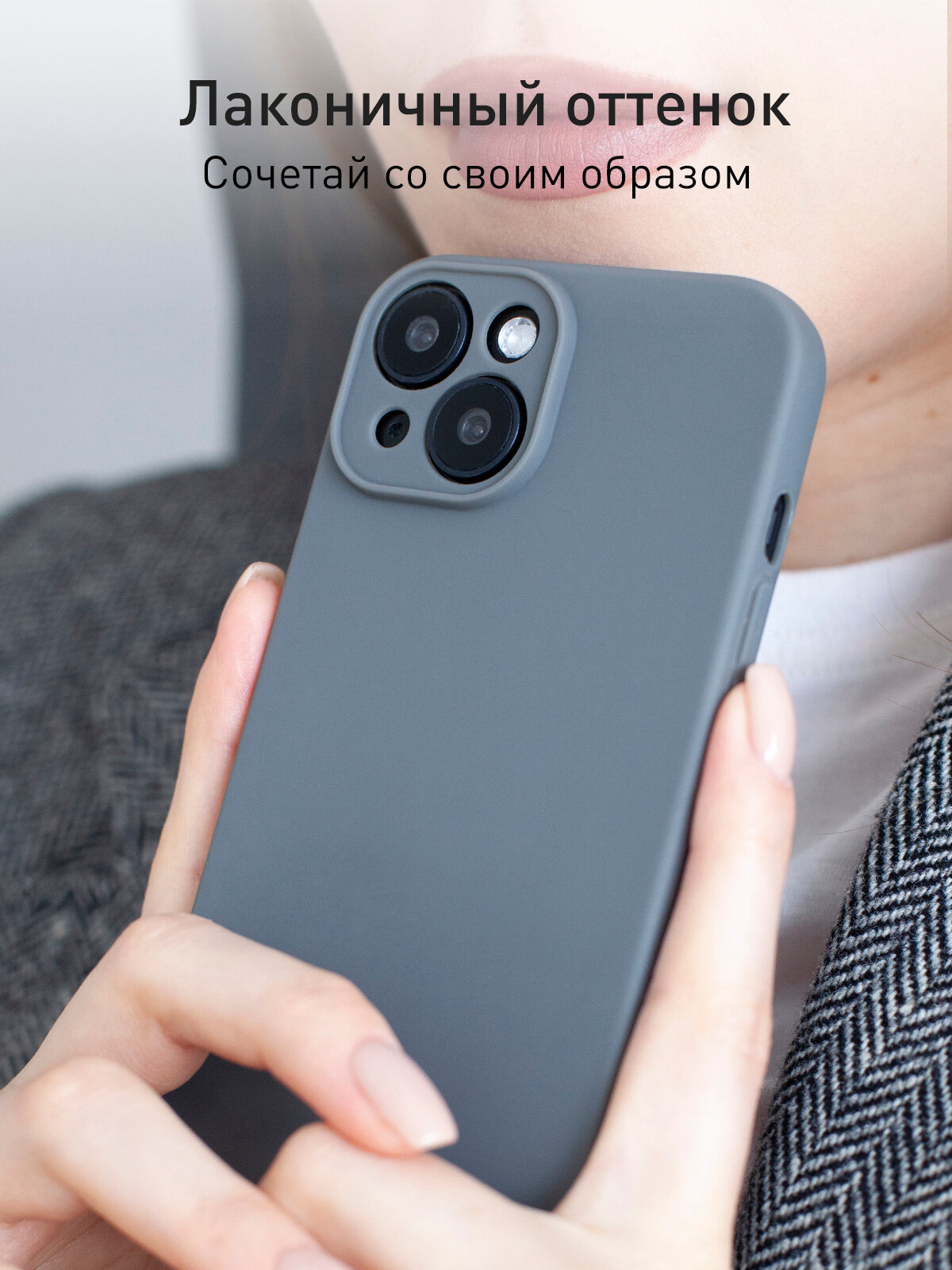 Купить Чехол ROSCO для Apple iPhone 15 (Эпл Айфон 15), силиконовый чехол, тонкий, матовое покрытие, защита модуля камер, графитовый