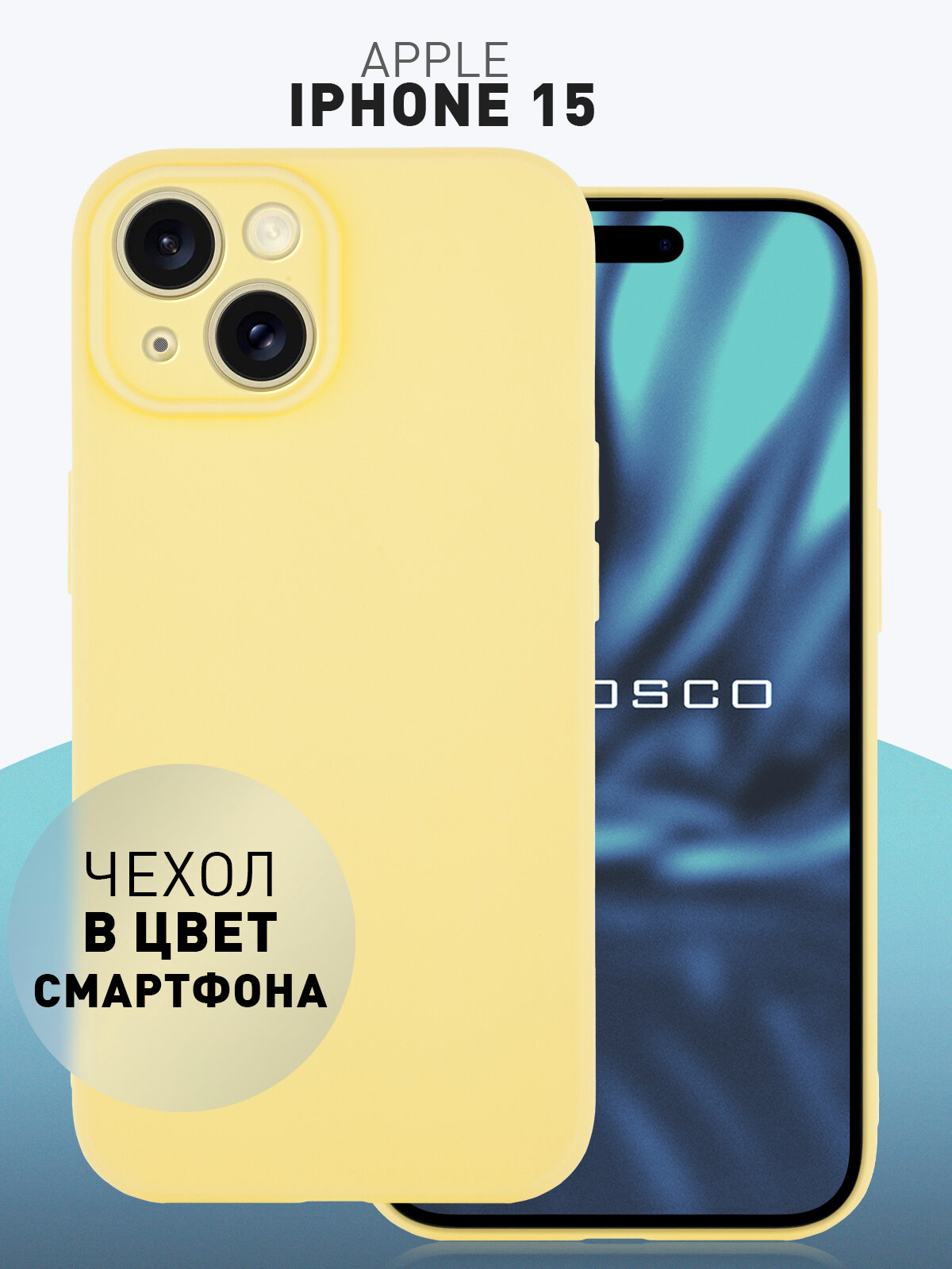 Матовый силиконовый чехол Rosco на Apple iPhone 15 (Айфон 15), тонкий, желтый под цвет телефона