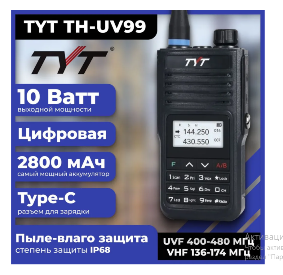 Рация TYT TH-UV99/ Черная 10 Вт и радиусом до 15 км интересное: