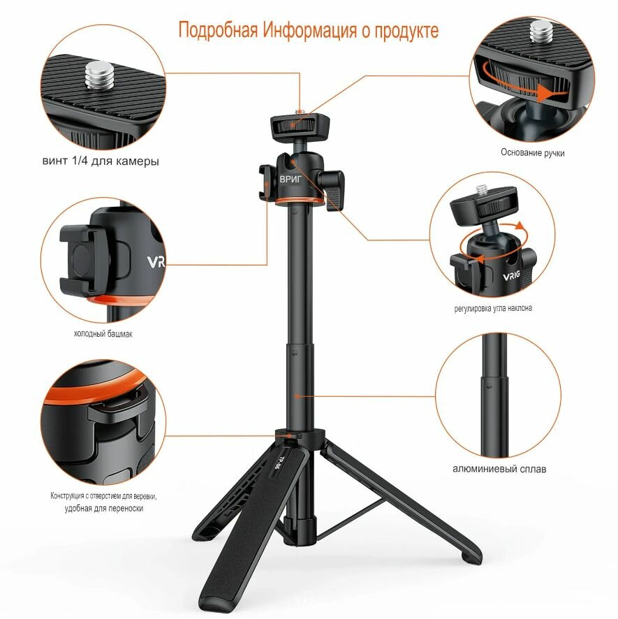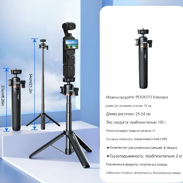 Телескопический штатив для DJI Pocket 3/ Insta360 TP-06 (29-55см) интересное: