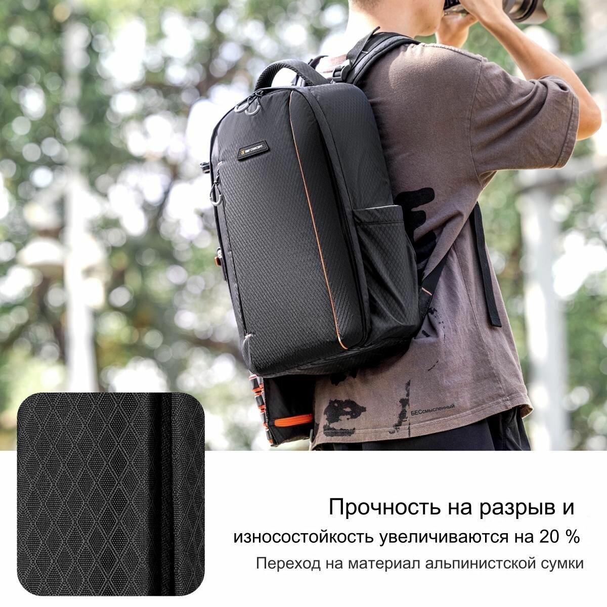 Вместительная фотосумка, рюкзак для фототехники 20 л черный с твердым каркасом K&F Concept (KF13.144)