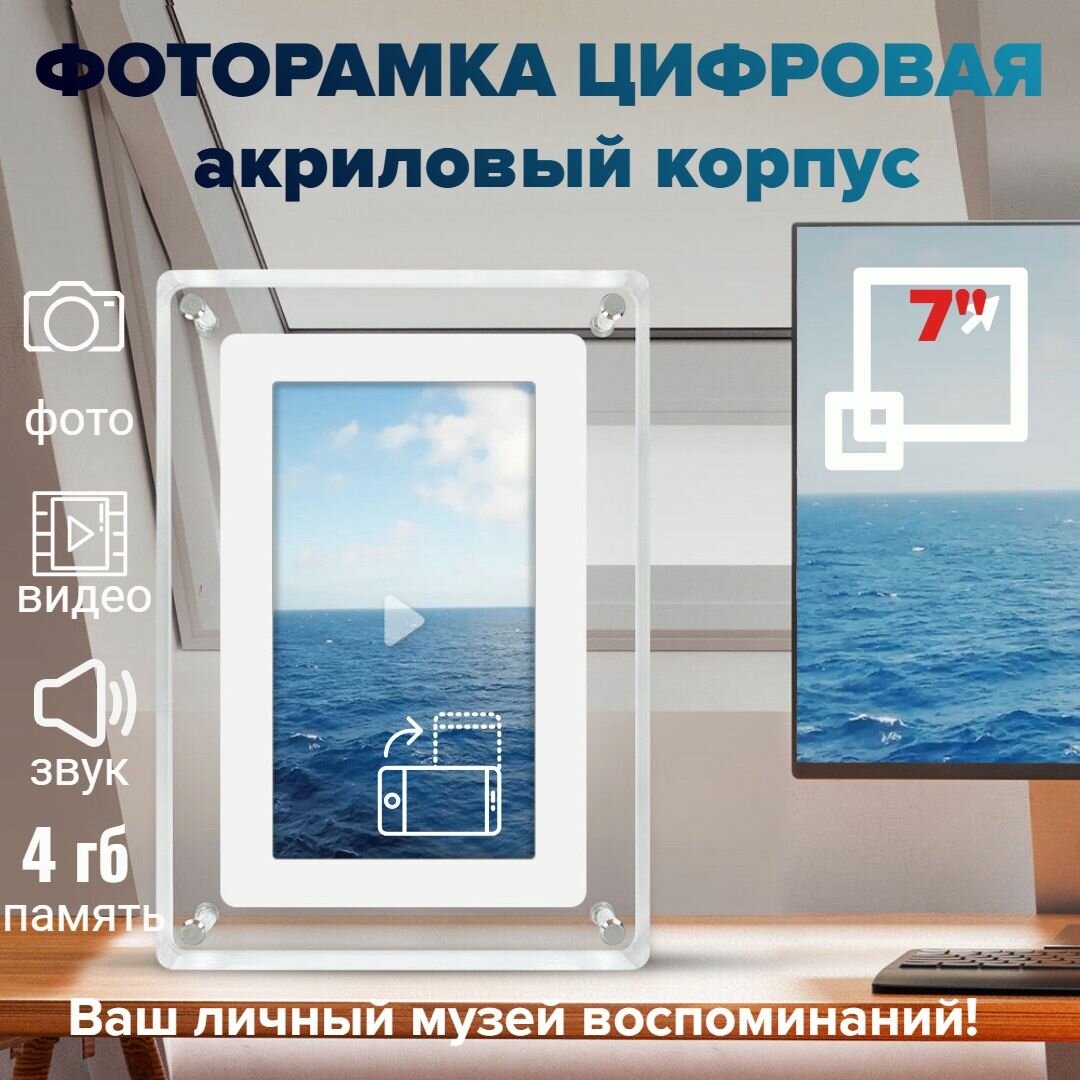 Купить Цифровая фоторамка электронная 7" в прозрачном акриловом корпусе