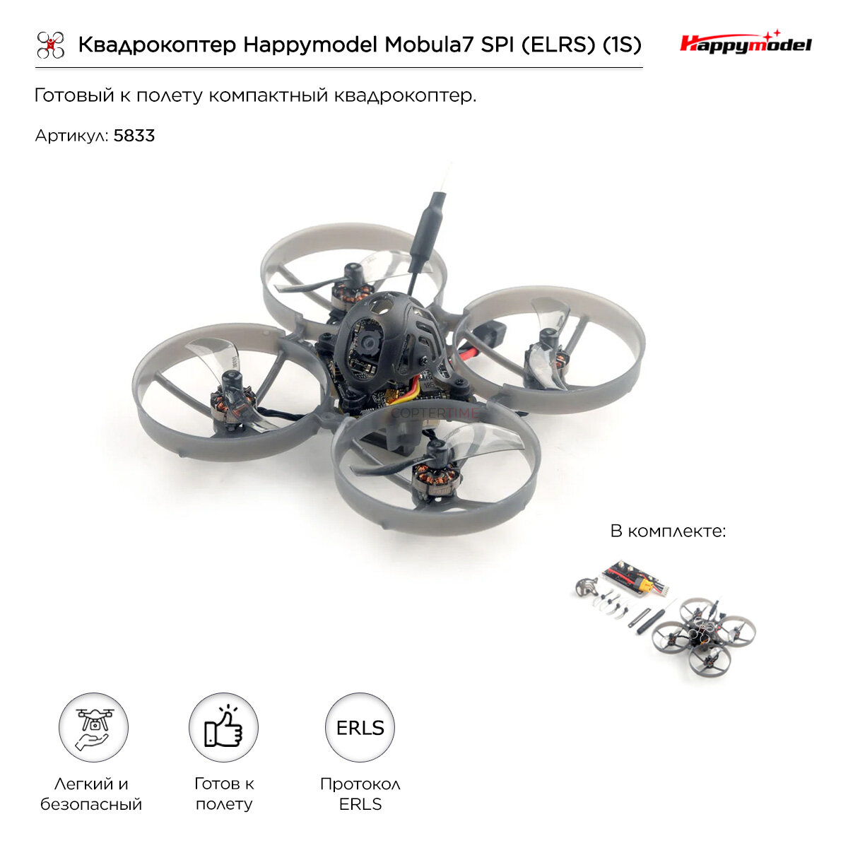 Квадрокоптер Happymodel Mobula7 SPI (ELRS) (1S) интересное:
