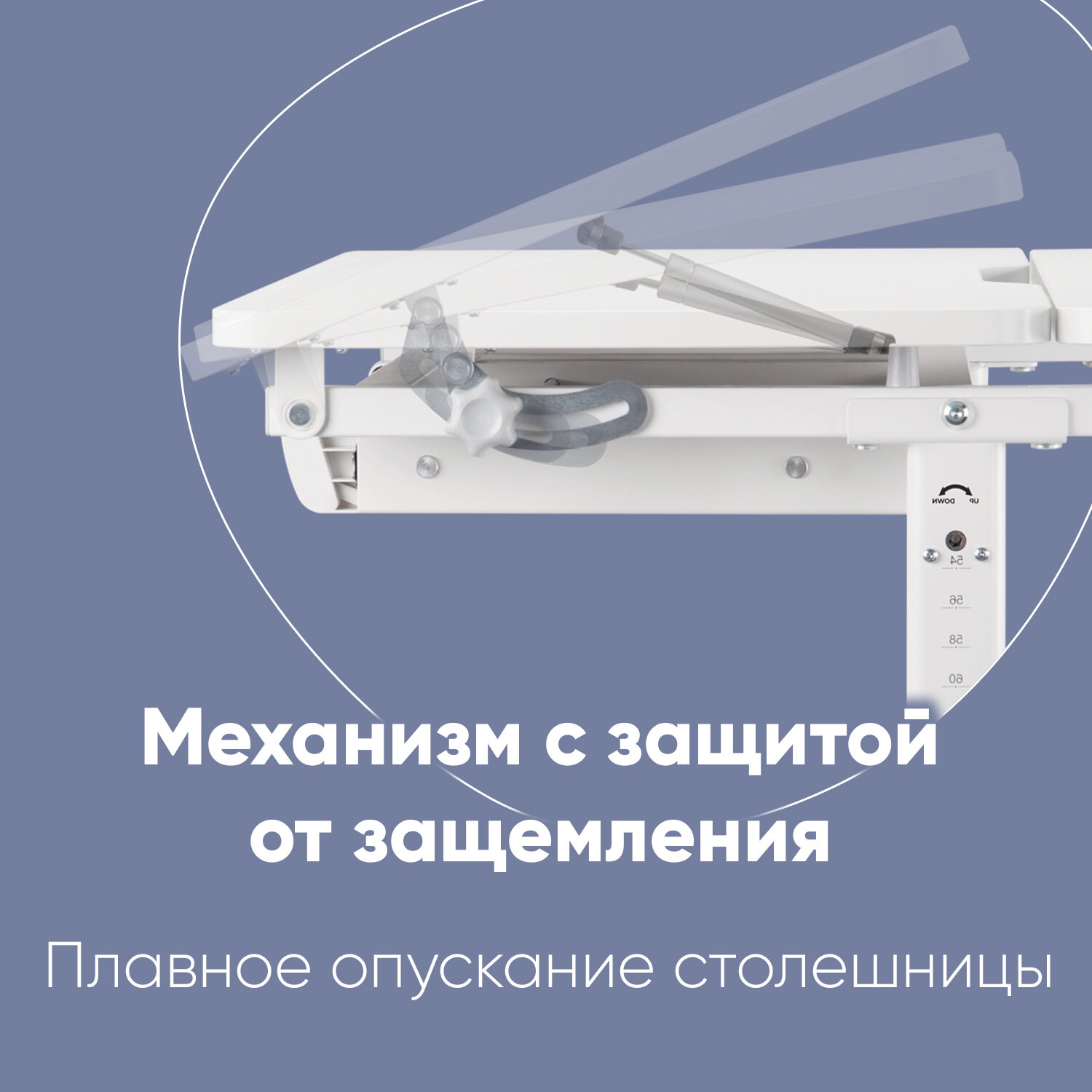 Растущая парта для школьника Rumbik Smart серая, детский деревянный письменный стол с регулировкой высоты