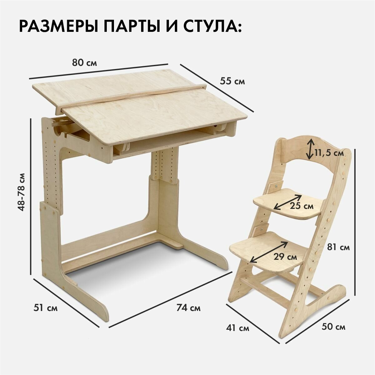Купить Парта для школьника и растущий стул с подушкой, комплект мебели