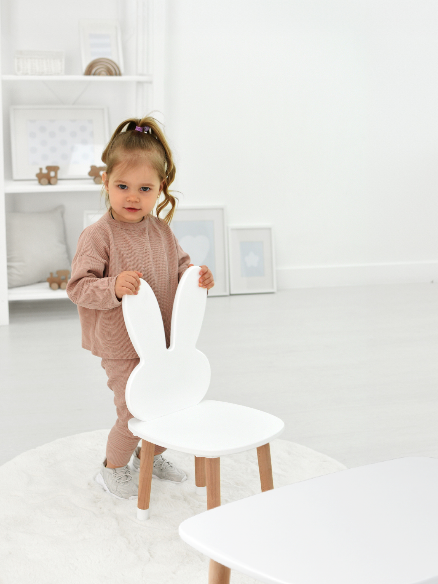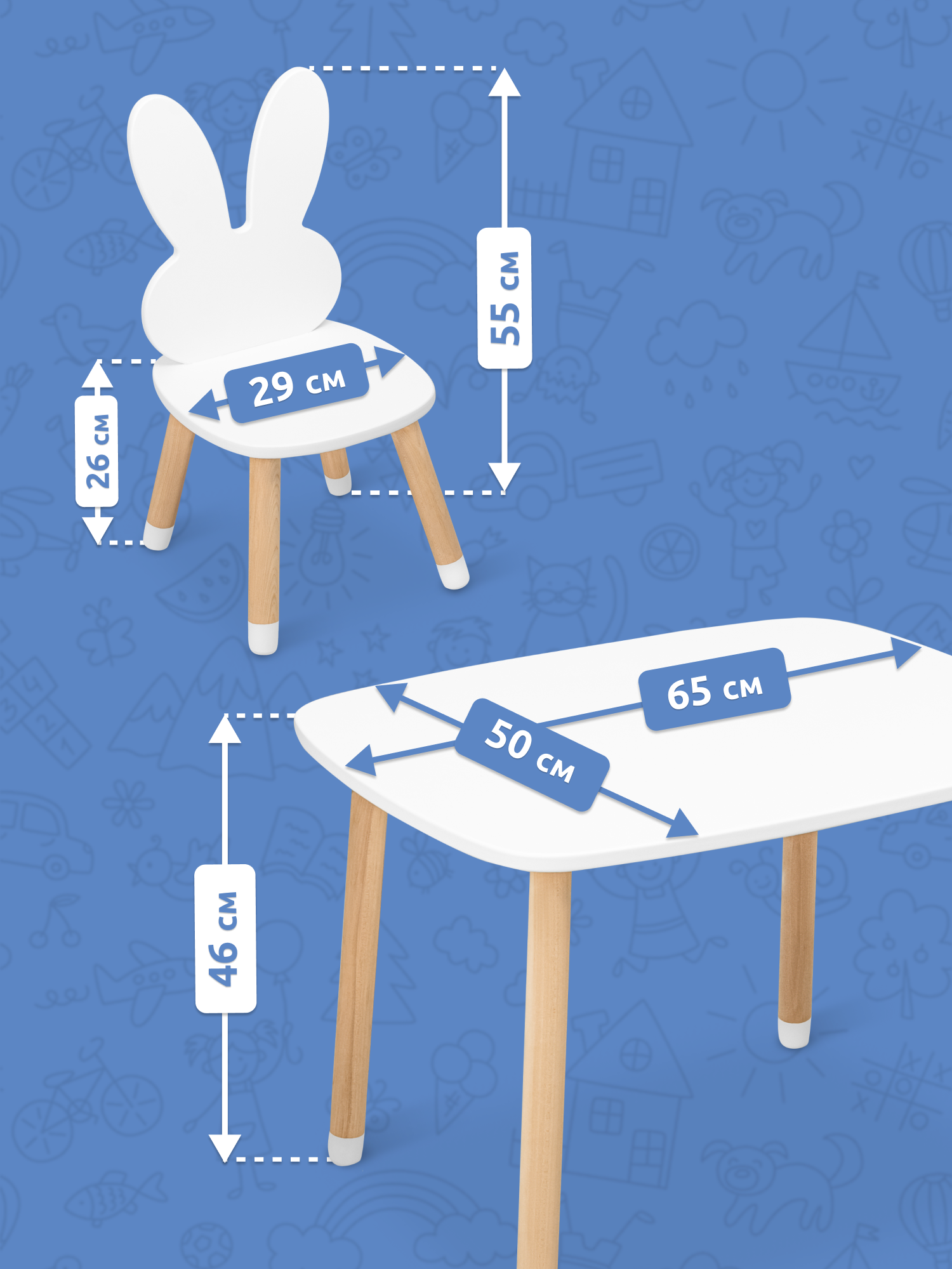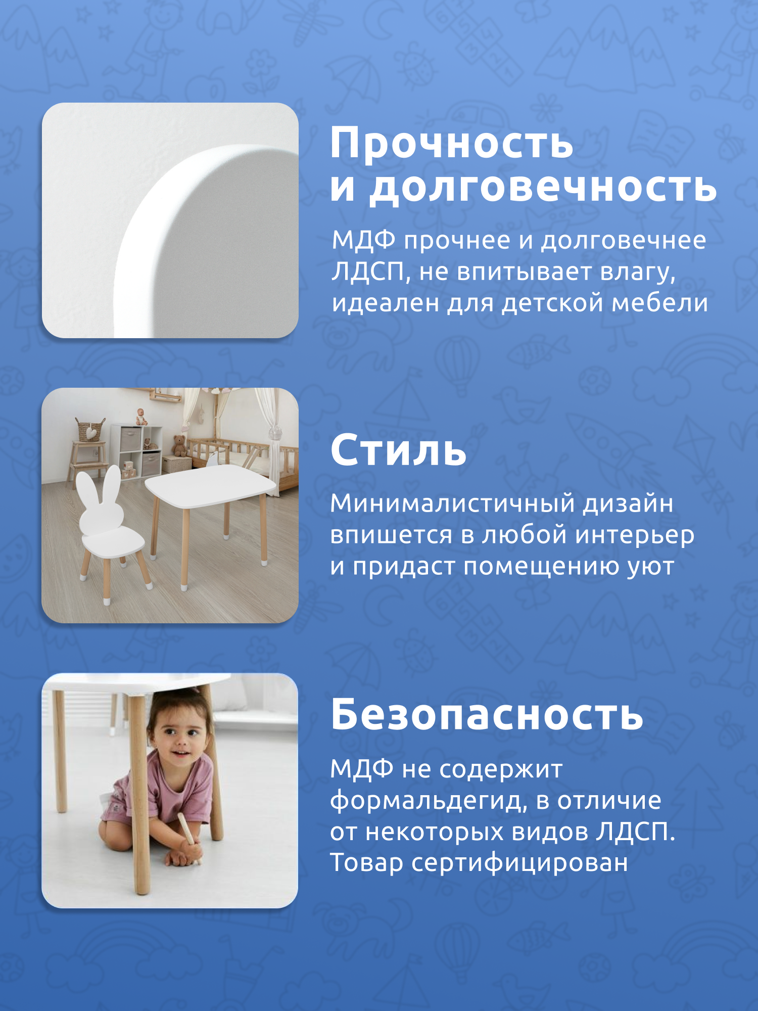Детский стол и стул из дерева MEGA TOYS Кролик комплект деревянный белый столик со стульчиком / набор мебели для детской комнаты