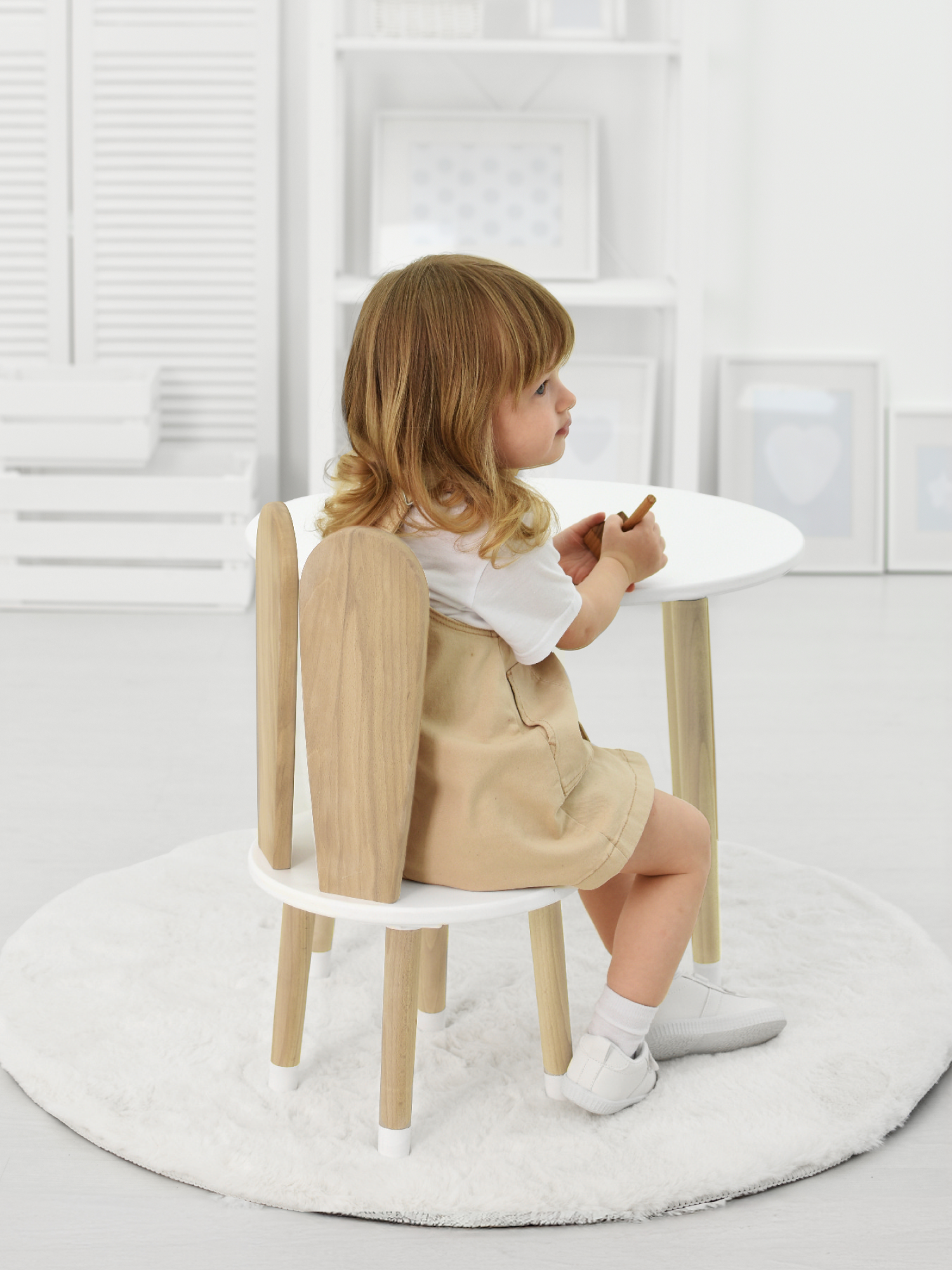 Купить Детский стол и стул из дерева MEGA TOYS Кролик комплект деревянный белый столик со стульчиком / набор мебели для детской комнаты