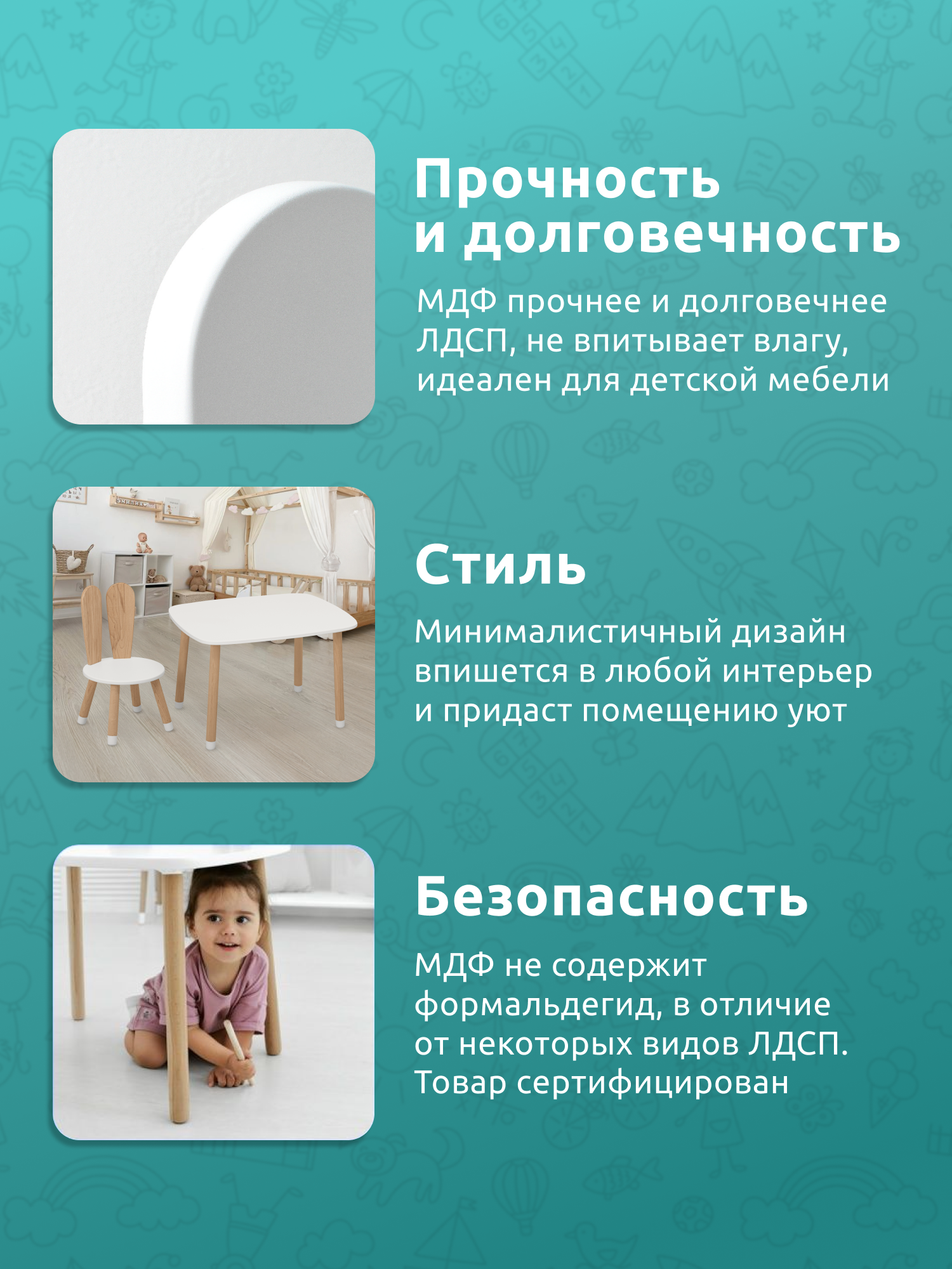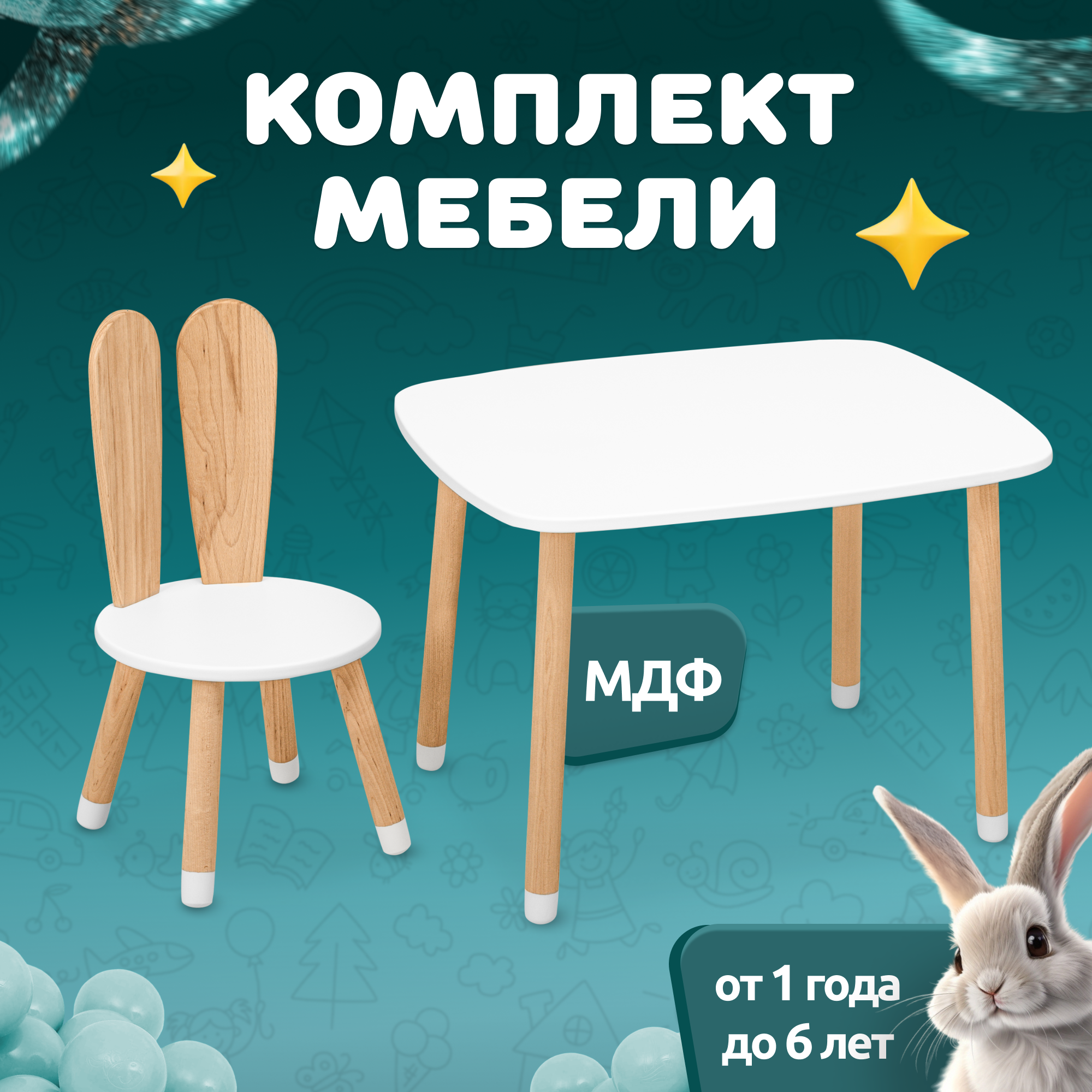 Ниже Вы можете прочитать отзывы на Детский стол и стул из дерева MEGA TOYS Кролик комплект деревянный белый столик со стульчиком / набор мебели для детской комнаты, ознакомится с подробными характеристиками, посмотреть интересные обзоры и фотографии на Детский стол и стул из дерева MEGA TOYS Кролик комплект деревянный белый столик со стульчиком / набор мебели для детской комнаты.