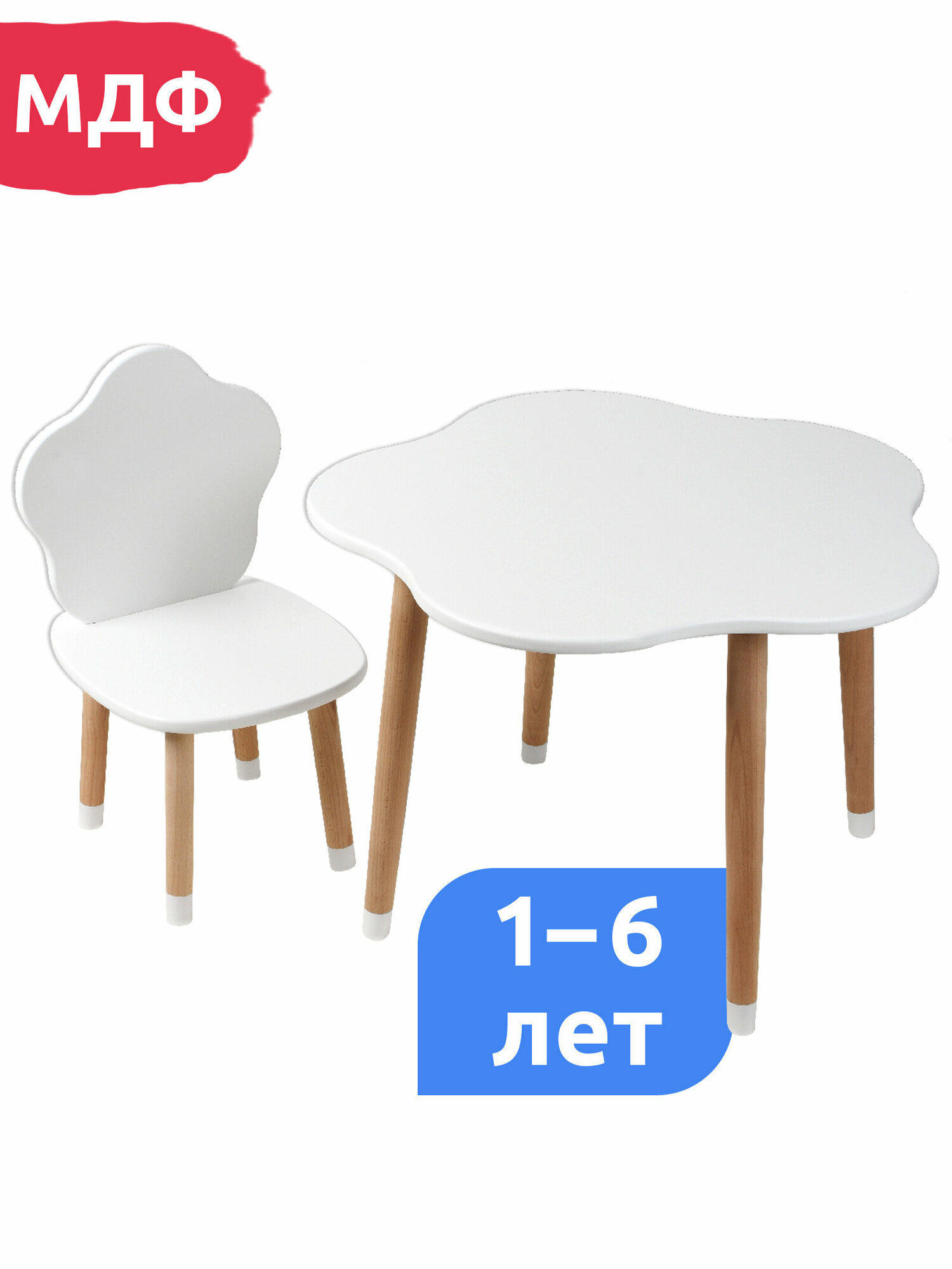 Детский стол и стул из дерева MEGA TOYS Кролик комплект деревянный белый столик со стульчиком / набор мебели для детской комнаты