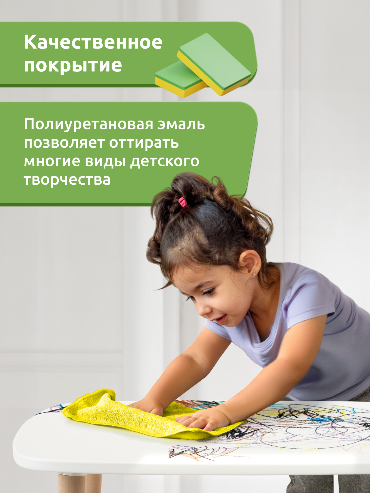 Белый овальный стол «Stumpa» разработан для удобного занятия творчеством или игр ребенка от 1,5 до 5 лет.