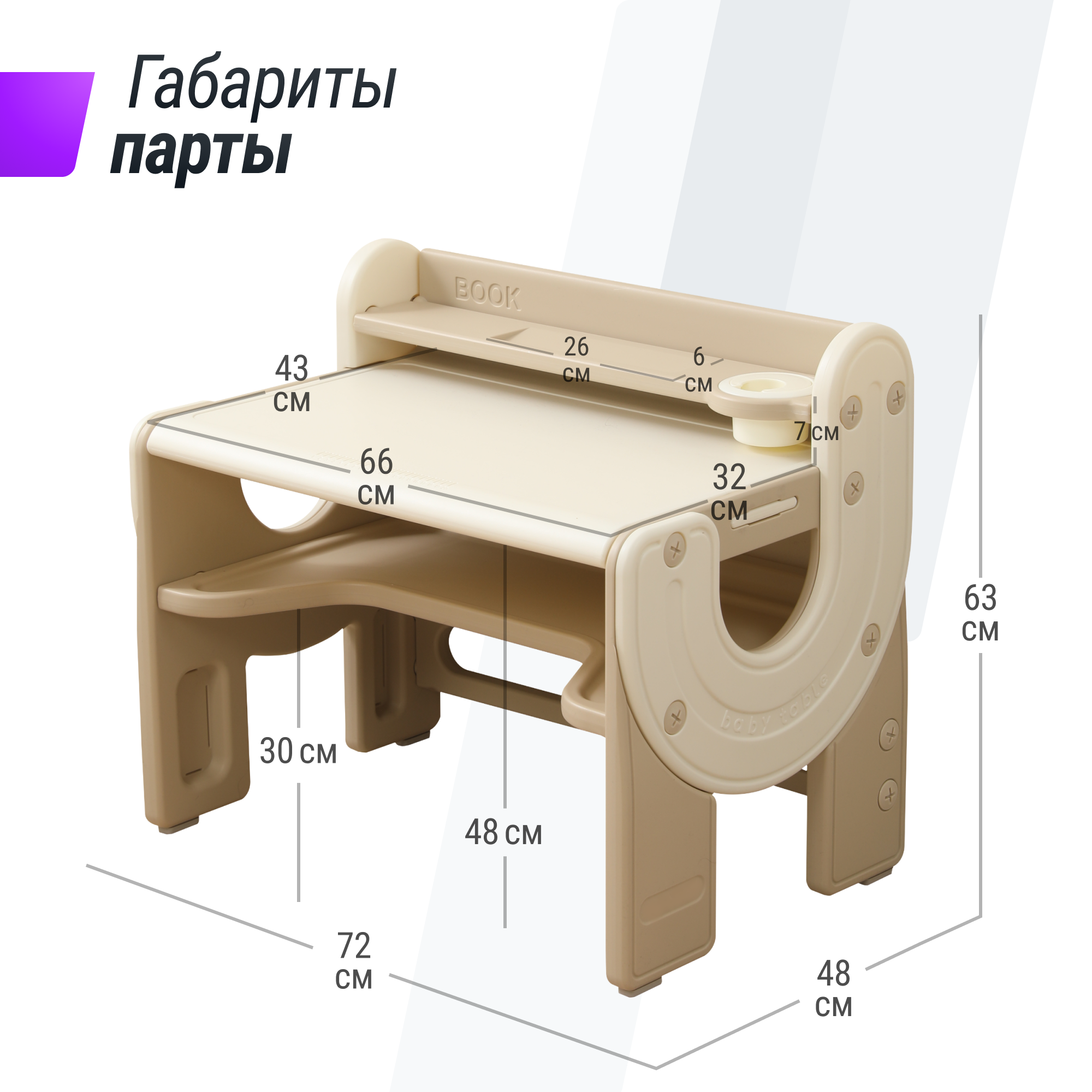 Купить Детский стол и стул набор UNIX Kids Sand комплект детской мебели, пластиковый письменный игровой столик парта и стульчик в комнату