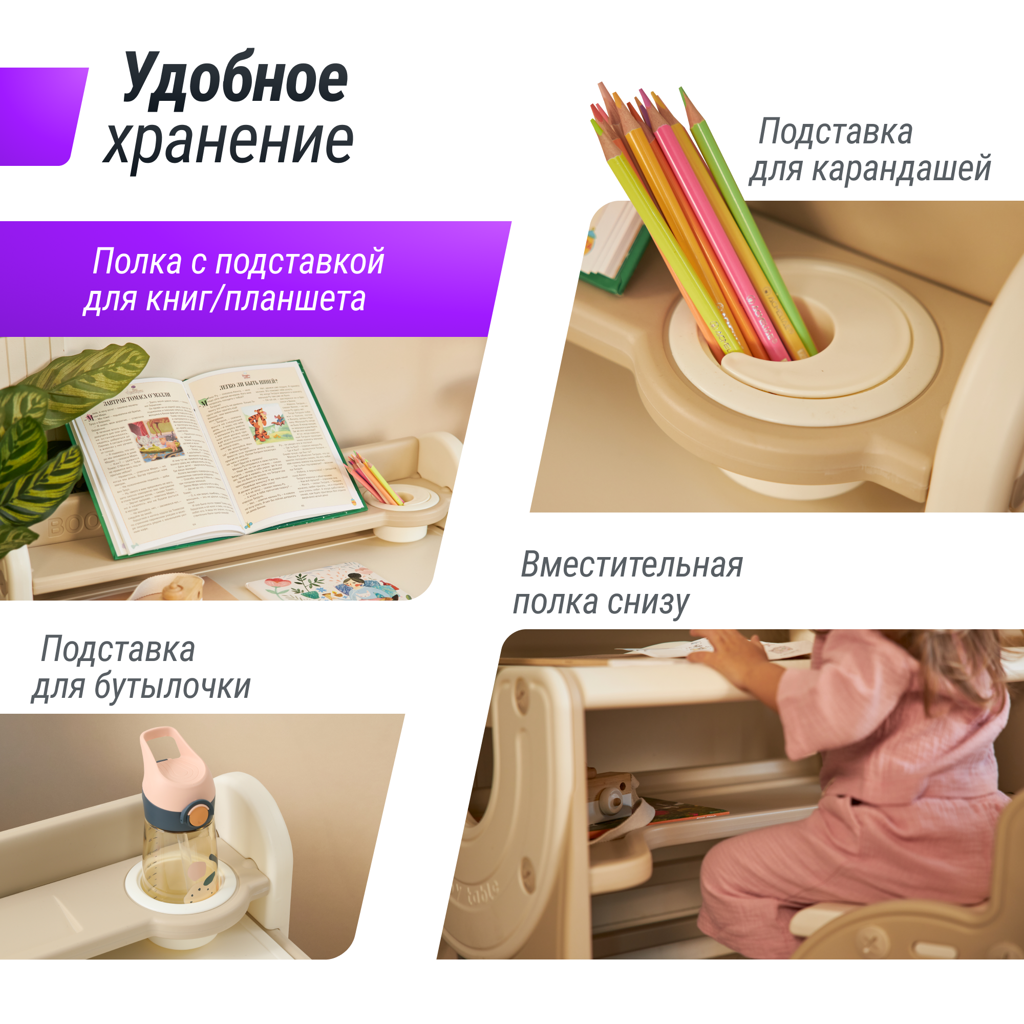 Детский стол и стул набор UNIX Kids Sand комплект детской мебели, пластиковый письменный игровой столик парта и стульчик в комнату интересное: