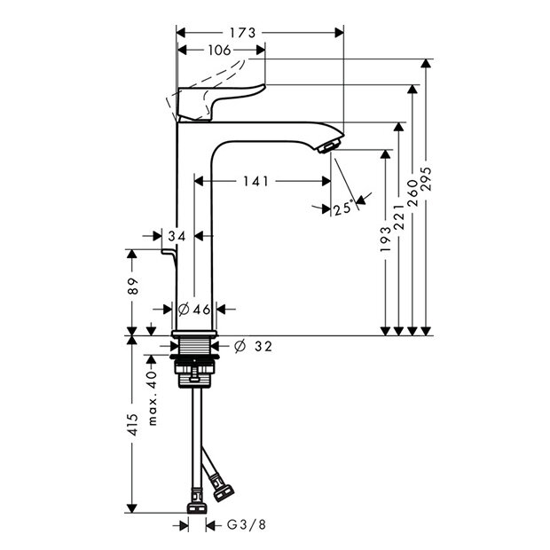 Смеситель для умывальника Hansgrohe Metris, арт. 31183000, неповоротный излив, с донным клапаном