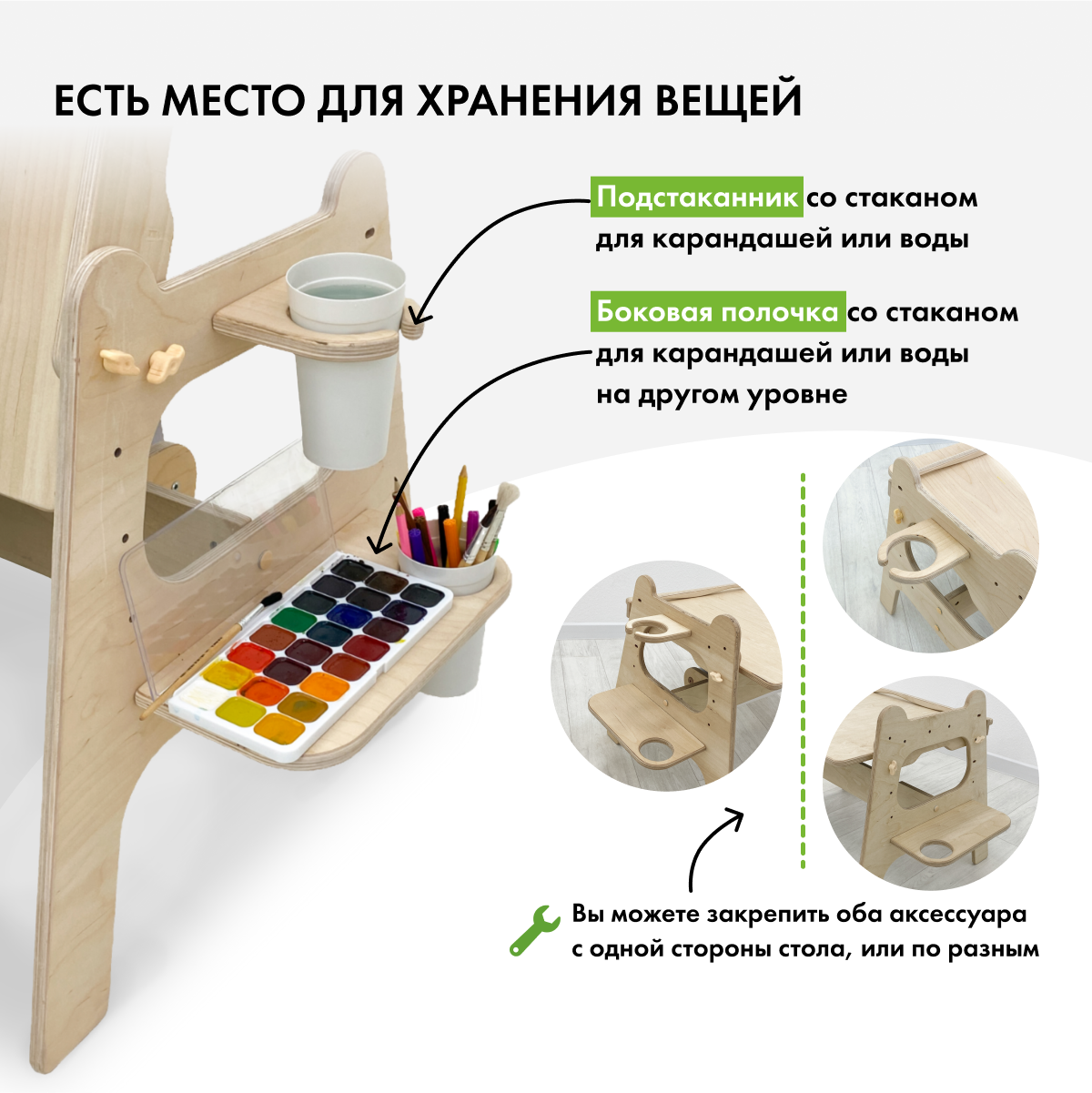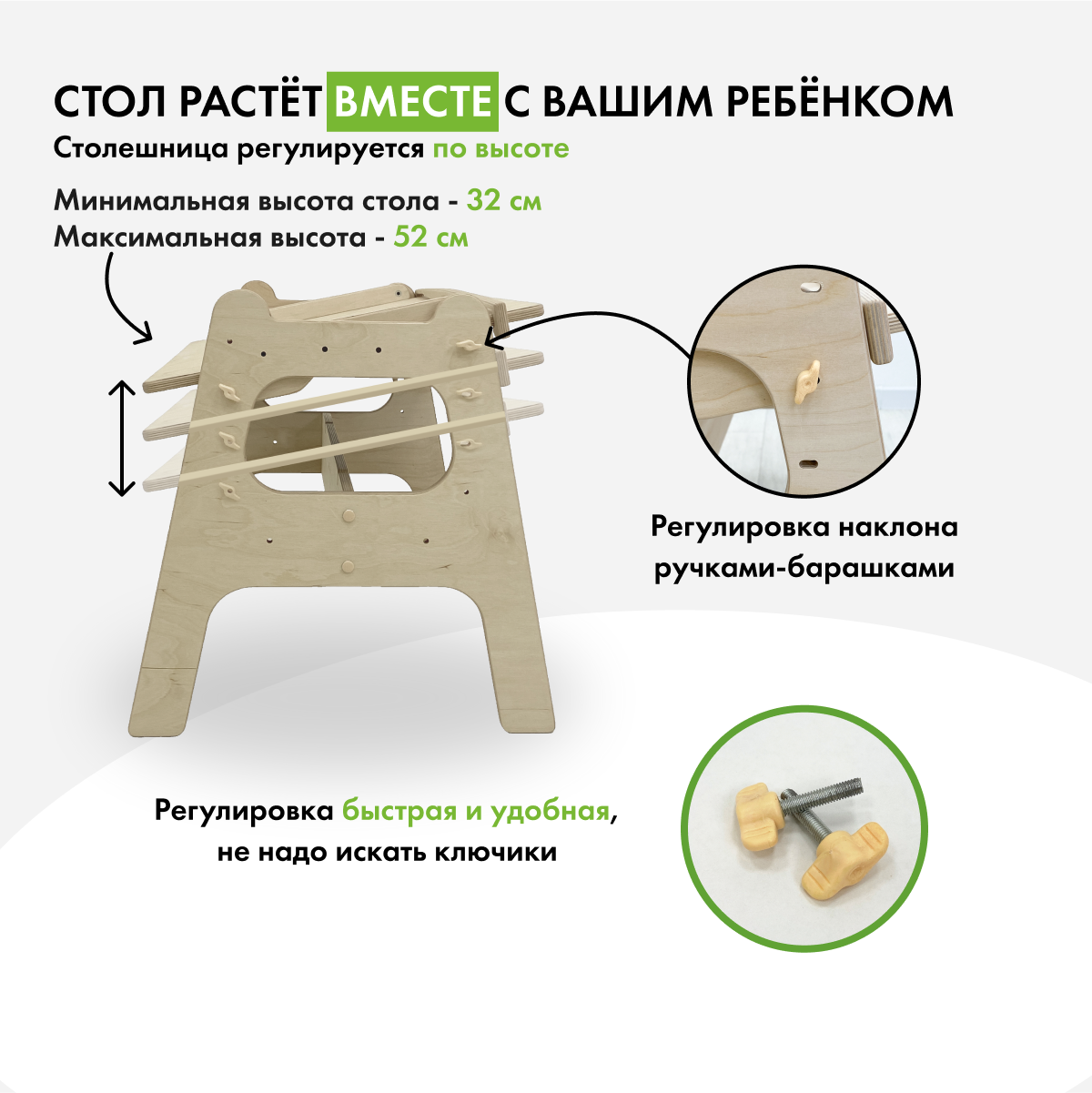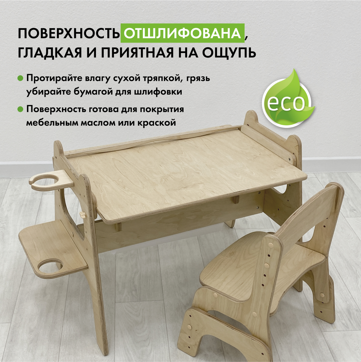 Стол детский Малышок и растущий стул, полная комплектация, прозрачное масло