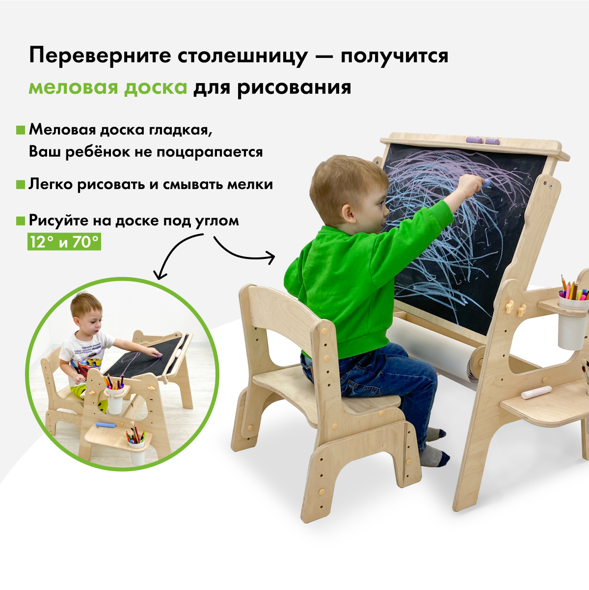Стол детский Малышок и растущий стул, полная комплектация, без покрытия