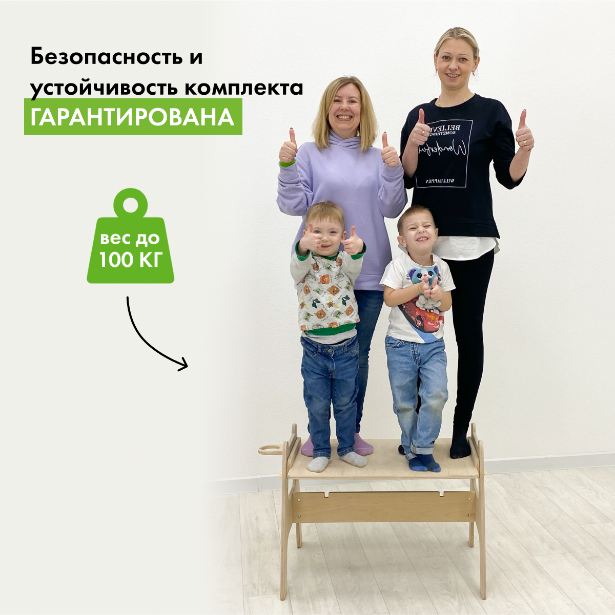Стол детский Малышок и растущий стул, полная комплектация, прозрачное масло,подушки светло-серые