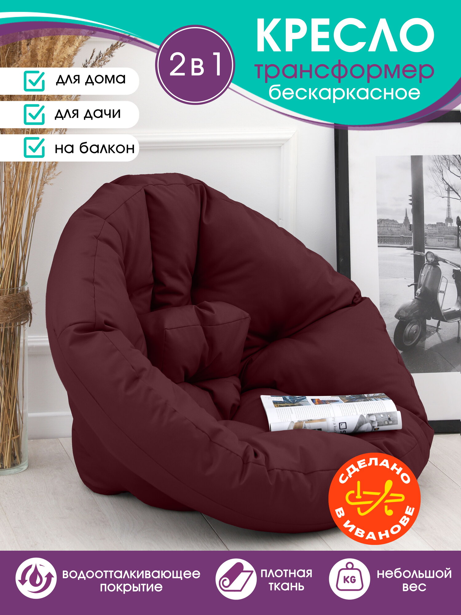 Купить Кресло садовое бескаркасное,кресло футон, кресло мешок, кресло трансформер для дома, на балкон, для дачи водоотталкивающий, бордо