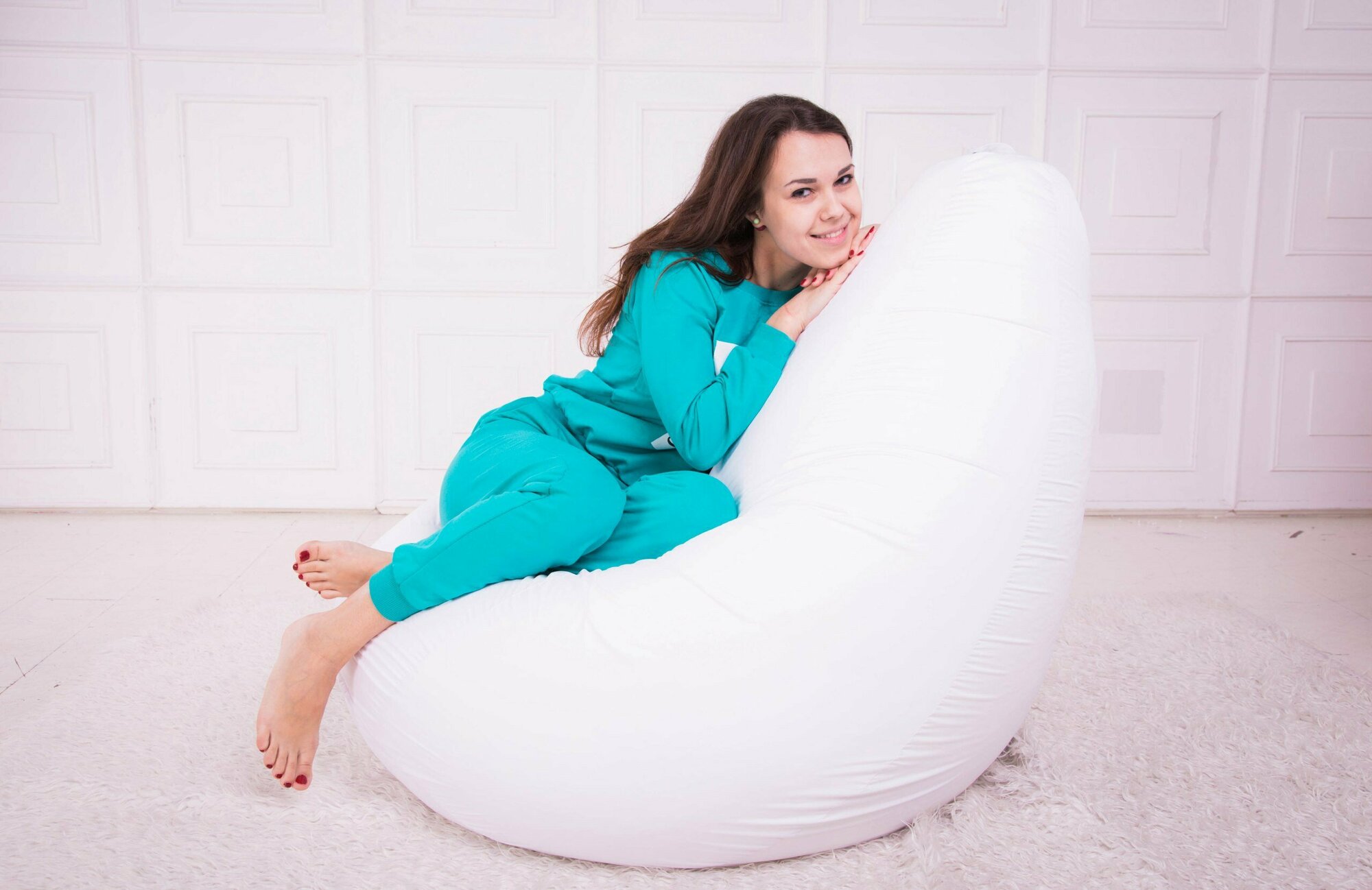 Бескаркасное кресло Груша XXL Рост до 160см Для подростков и невысоких людей белый Дюспо для улицы