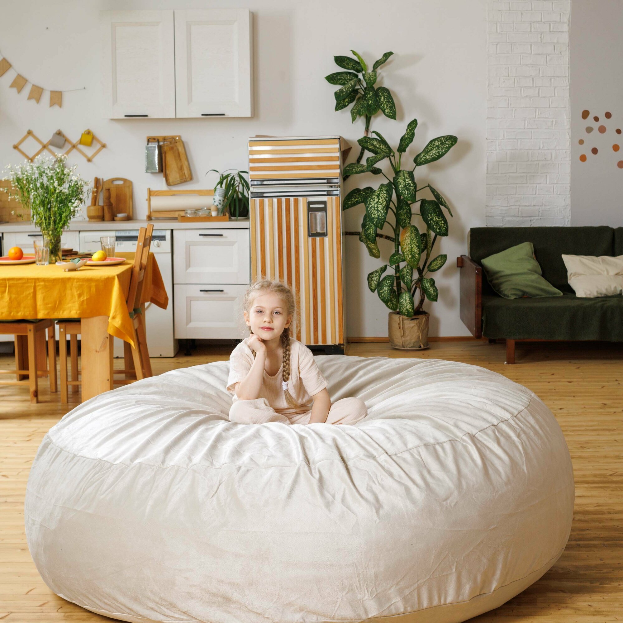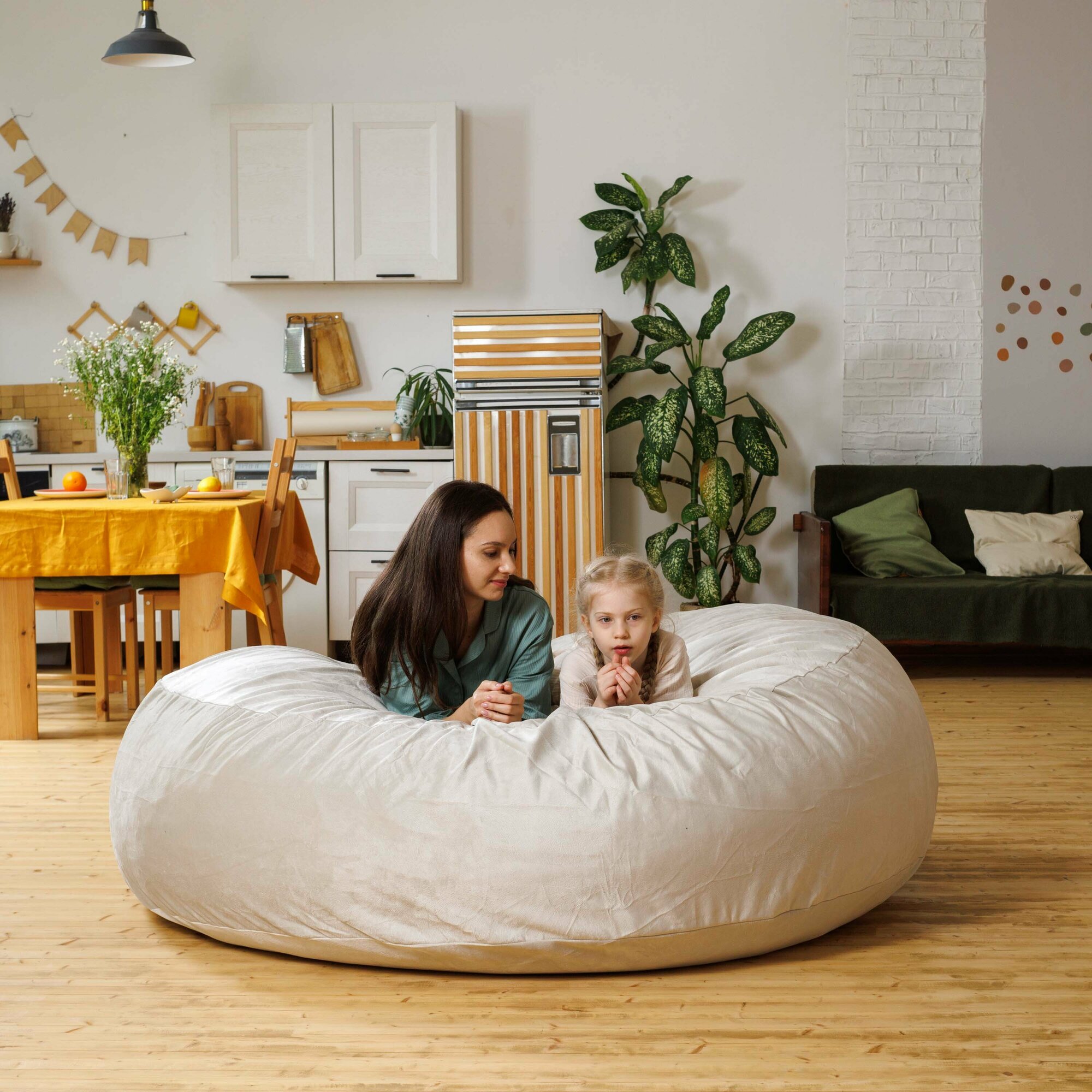 СохранитьКресло мешок Bubble Bag XXXL в форме пуфа 180х50 бескаркасное велюр с тиснением Кремовый интересное: