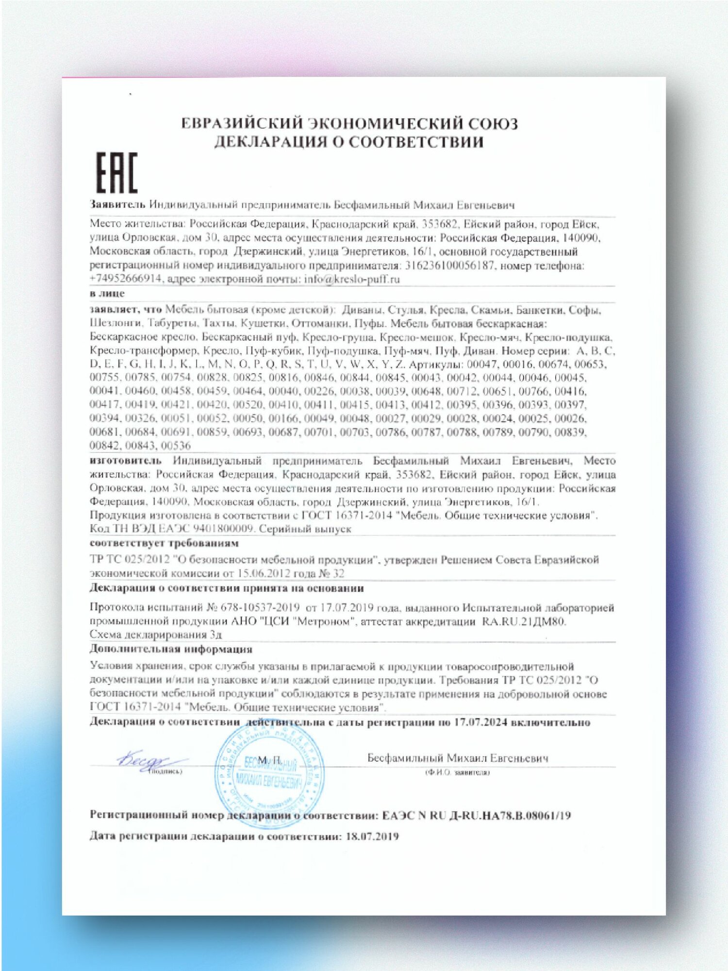 | Наполнитель | пенополистирол |