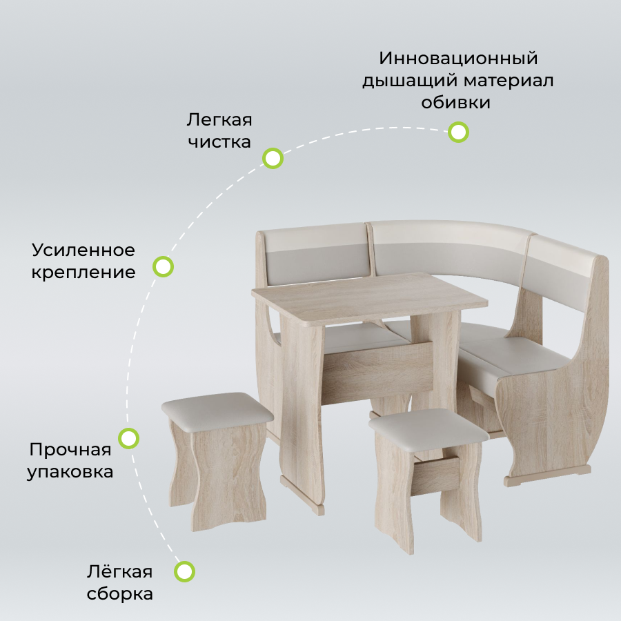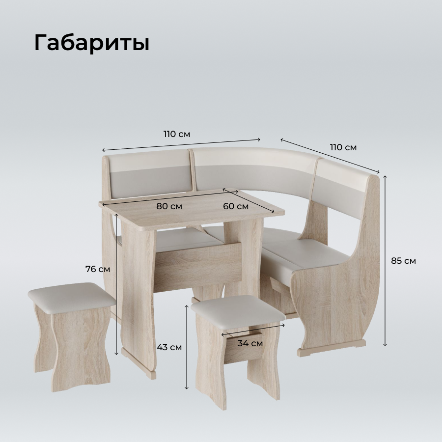 Кухонный уголок Уют 1 мини, BONMEBEL Дуб сонома/Серый/Белый 110х110х85 см интересное: