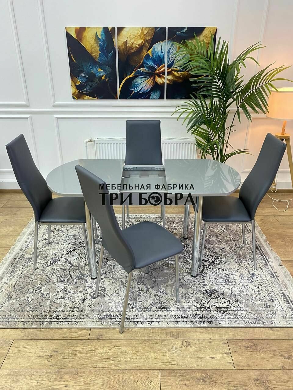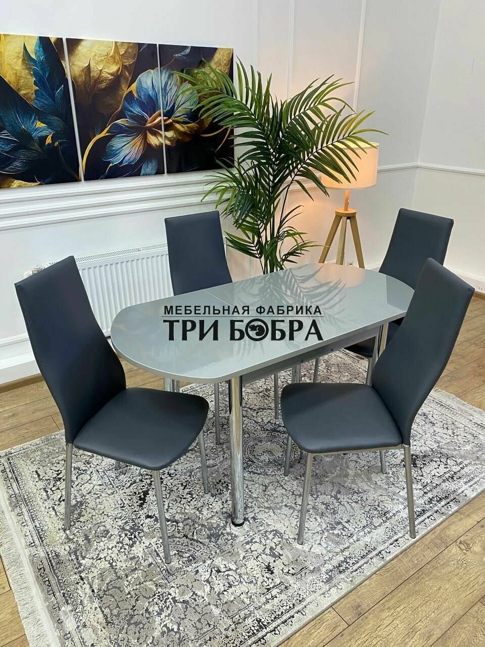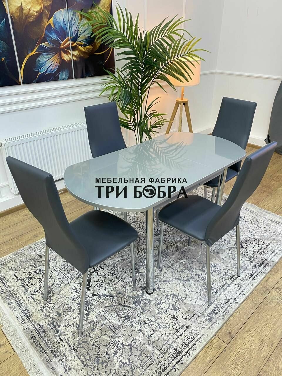 Купить Стол кухонный, стулья для кухни комплект 4 шт, ТРИ бобра, Металлик, раздвижной, 110х70х75 см
