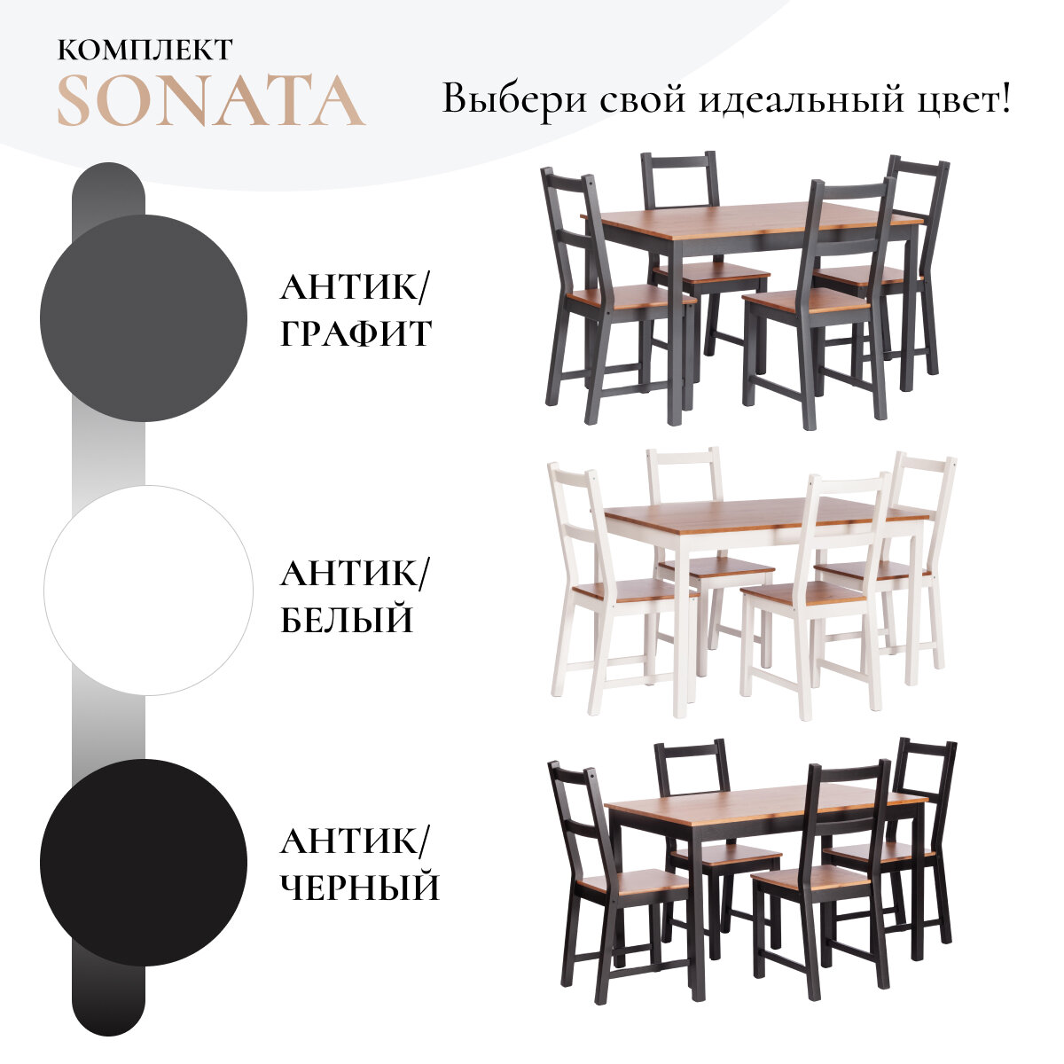 Обеденный комплект TetChair Соната (стол + 4 стула), массив сосны, антик/чёрный